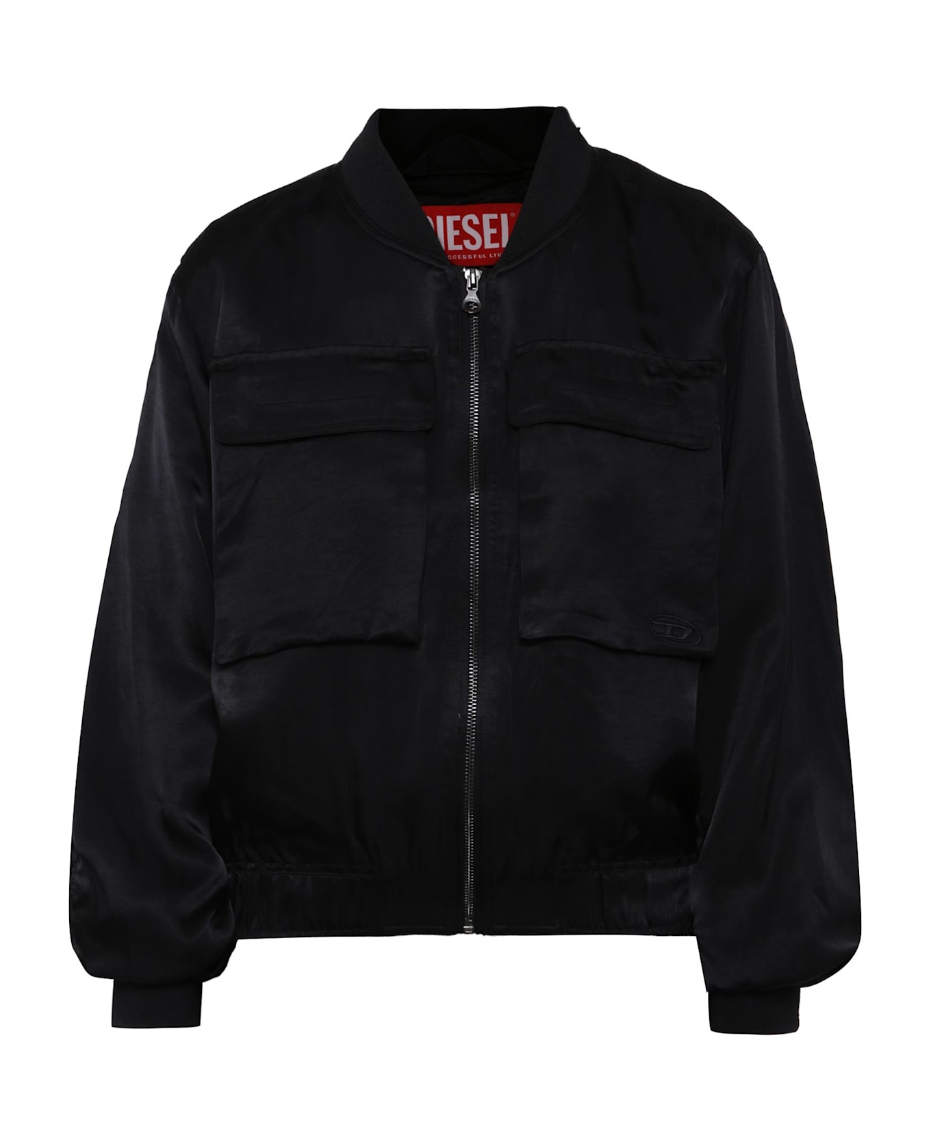Lightweight, long-sleeved black bomber jacket with a low ribbed collar, a front zip fastening, flap pockets with hook-and-loop fastening on the chest, ribbed cuffs and an elasticated hem. It is decorated with an embroidered logo on the front.