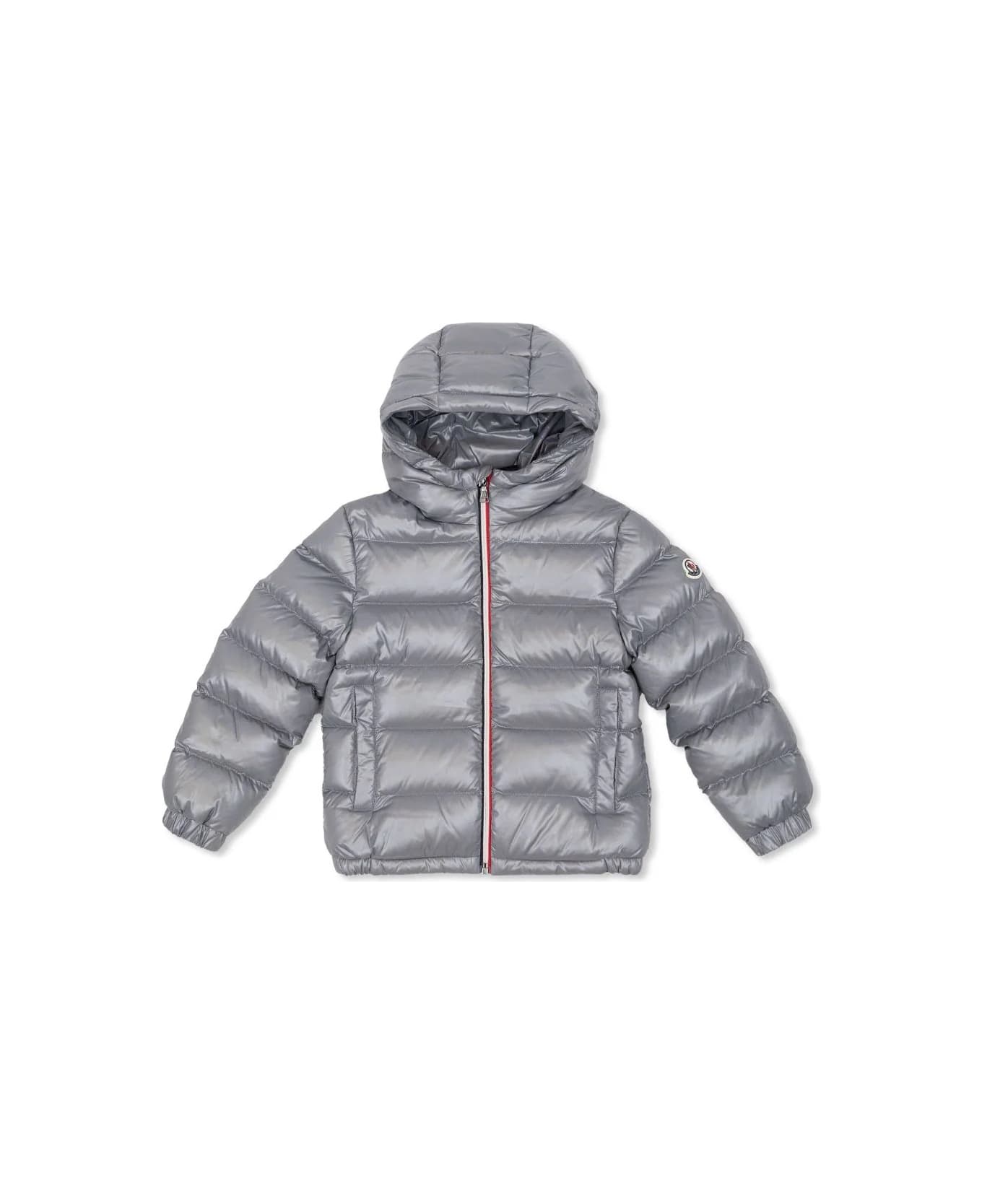 The grey New Aubert down jacket by Moncler Enfant is designed to offer protection and warmth in all circumstances, from walks to outdoor games. Made of laqué nylon, this short down jacket is distinguished by the tricolour hem along the zip fastening. Padded model featuring nylon lining, elasticated cuffs, hood with nylon laqué lining and snap button pockets.