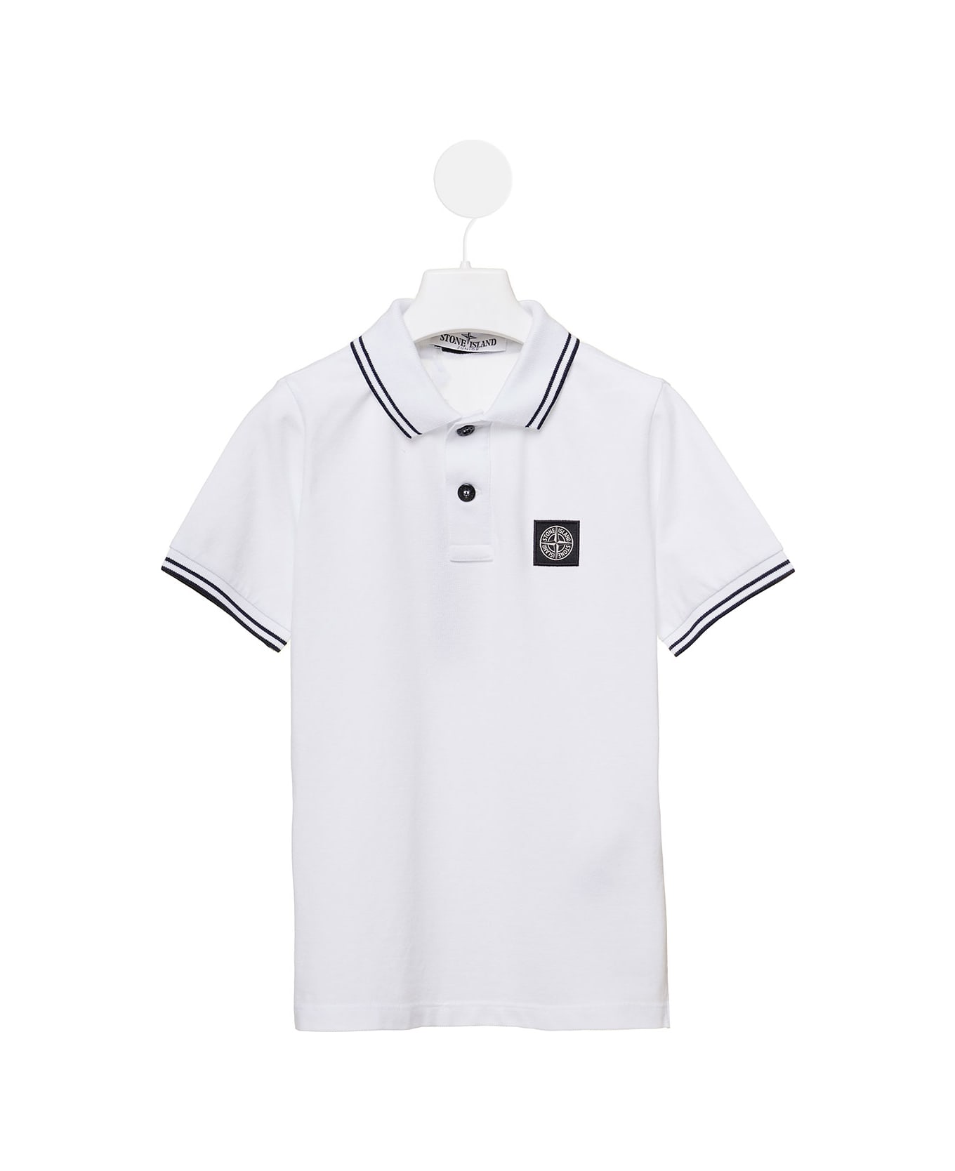 White Polo With Logo Patch And Stripe Detail In Cotton Stretch Boy Stone Island Kids