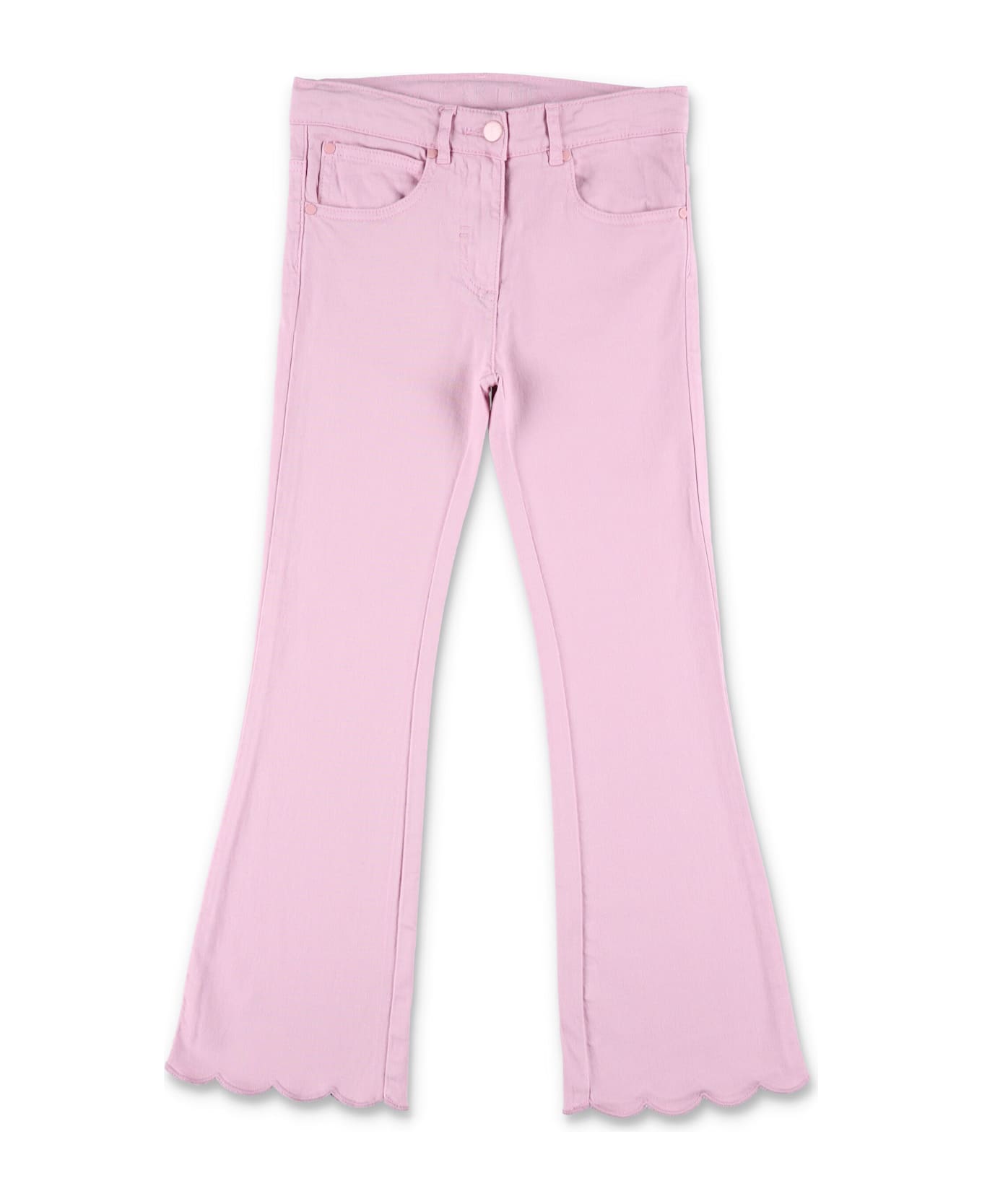Stretch Cotton Scallop Trim Denim Jeans By Stella Mccartney Kids. Featuring: Hook And Zip Fly Closure Adjustable Waist Belt Loops Five Pockets Logo Label At Back Flared Leg Scalloped Hem