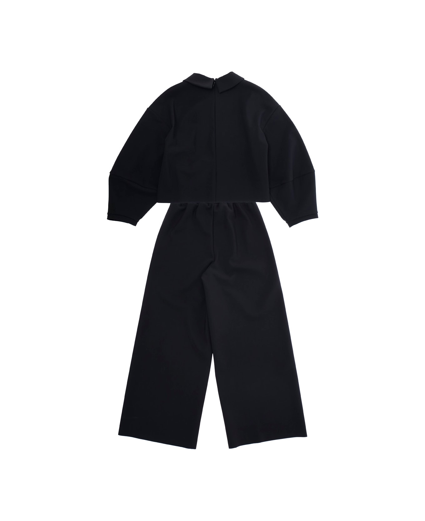 Suit Black Tech fabric stretch Relaxed fit Blouse Beaded collar Long sleeves Rear zip closure Straight hem Pants Straight hem