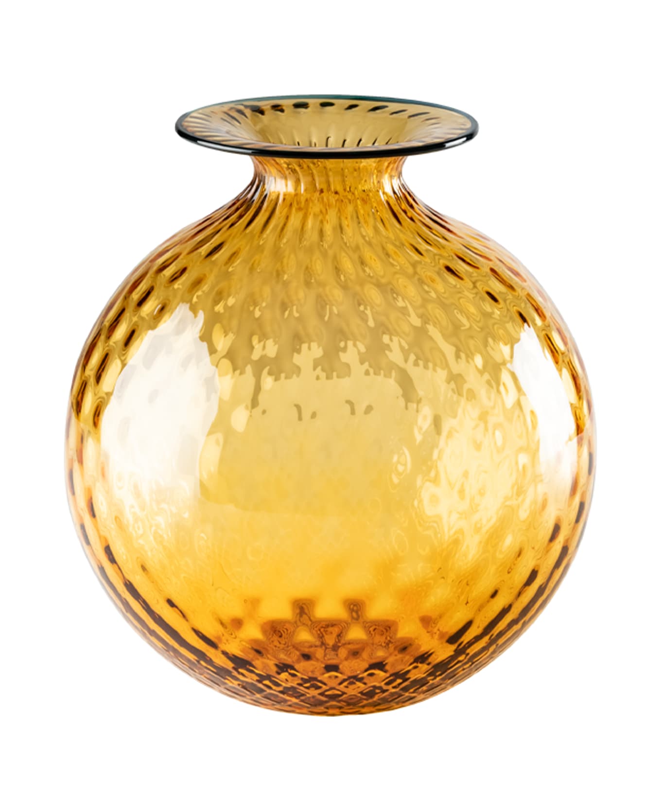 'Monofiore Balloton' stained glass vase. It looks soft, and yet it's glass. The optical illusion of the 1970 VENINI Monofiori is in its name: Balloton, the unique process that recreates the matelassé effect on the surface. The work is handmade, blowing in the characteristic metal mold and ended in the thin neck with a colored thread applied hot, which varies in the color.