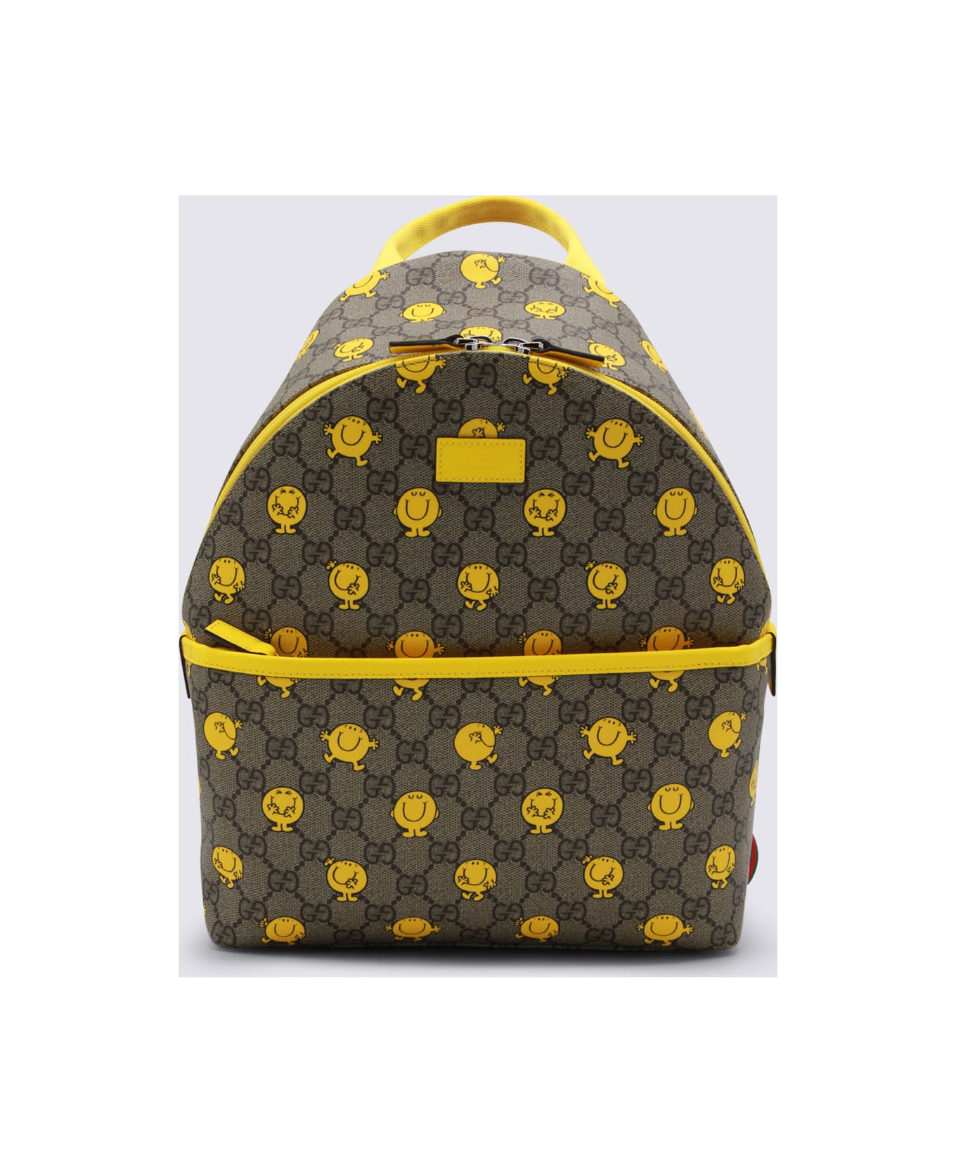 Yellow and brown backpack from Gucci featuring all over logo pattern, double zip fastening, frontal logo patch, short top handle and adjustable straps. Composition: 60% Polyurethane, 20% Cotton, 20% Polyester