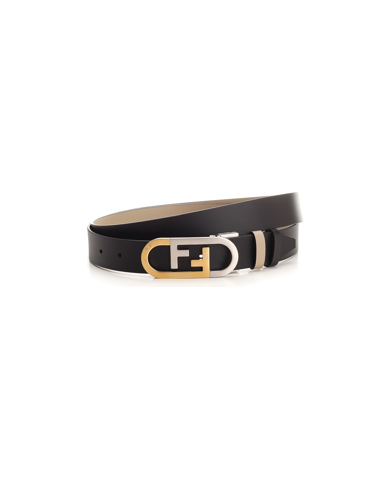 "Fendi O'Lock" reversible belt from Fendi in smooth black and beige leather, "Fendi O'Lock" buckle with palladium and gold finish.