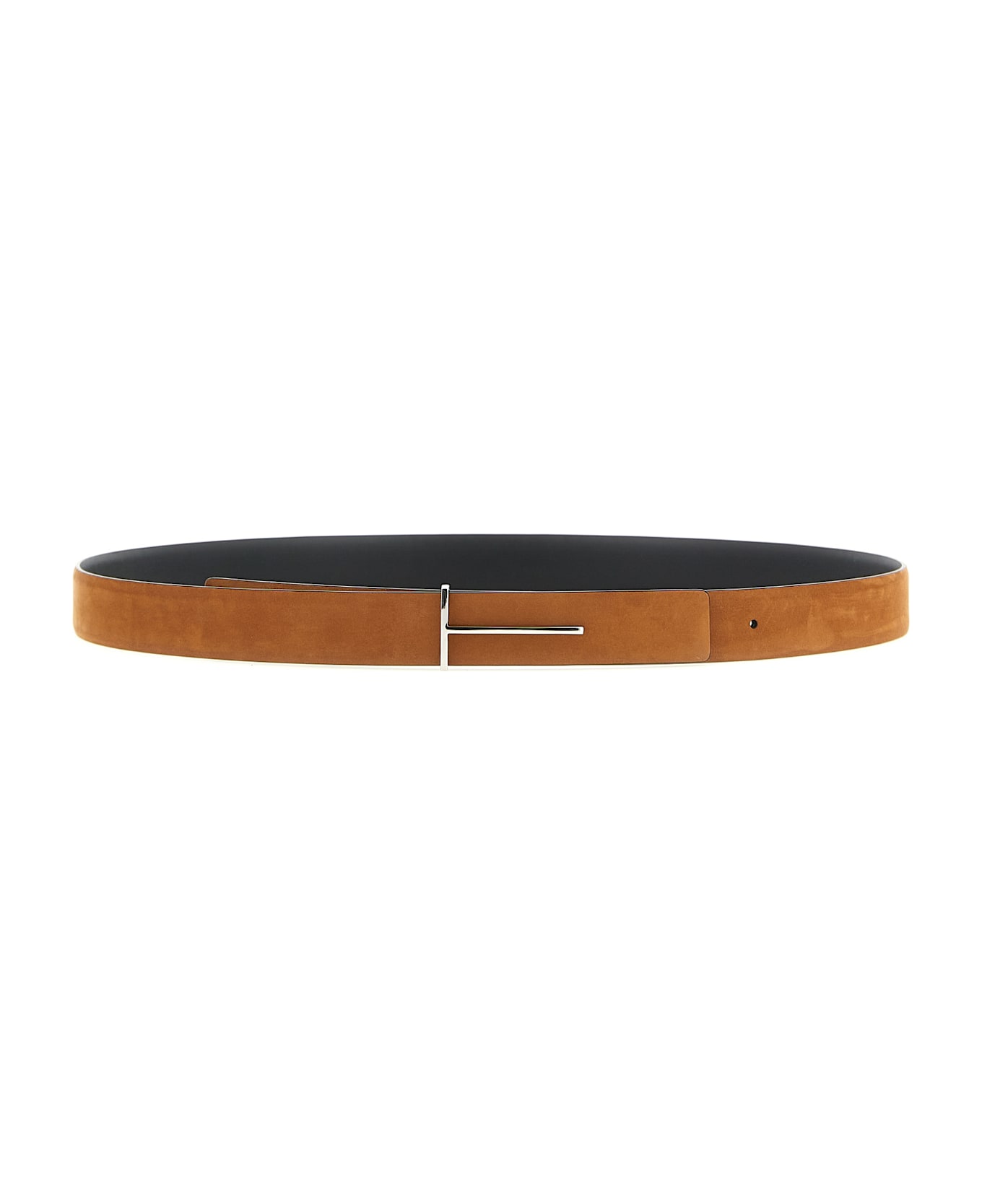 Reversible nubuck and smooth leather belt, metal 'Slim T' buckle. Side A: nubuck leather Side B: smooth matt leather