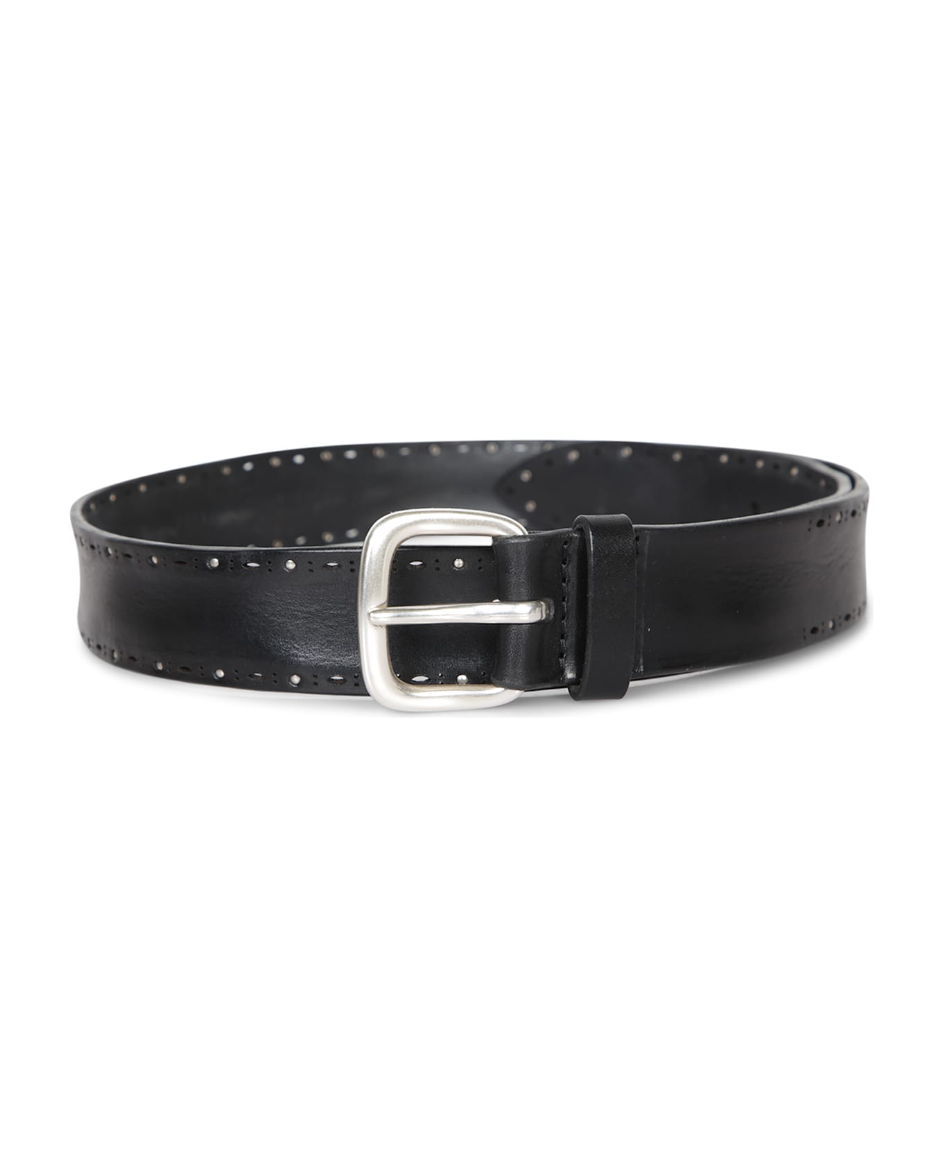 The Orciani soft black leather belt is embellished with elegant studs that add a touch of boldness. The silver buckle provides a refined contrast.