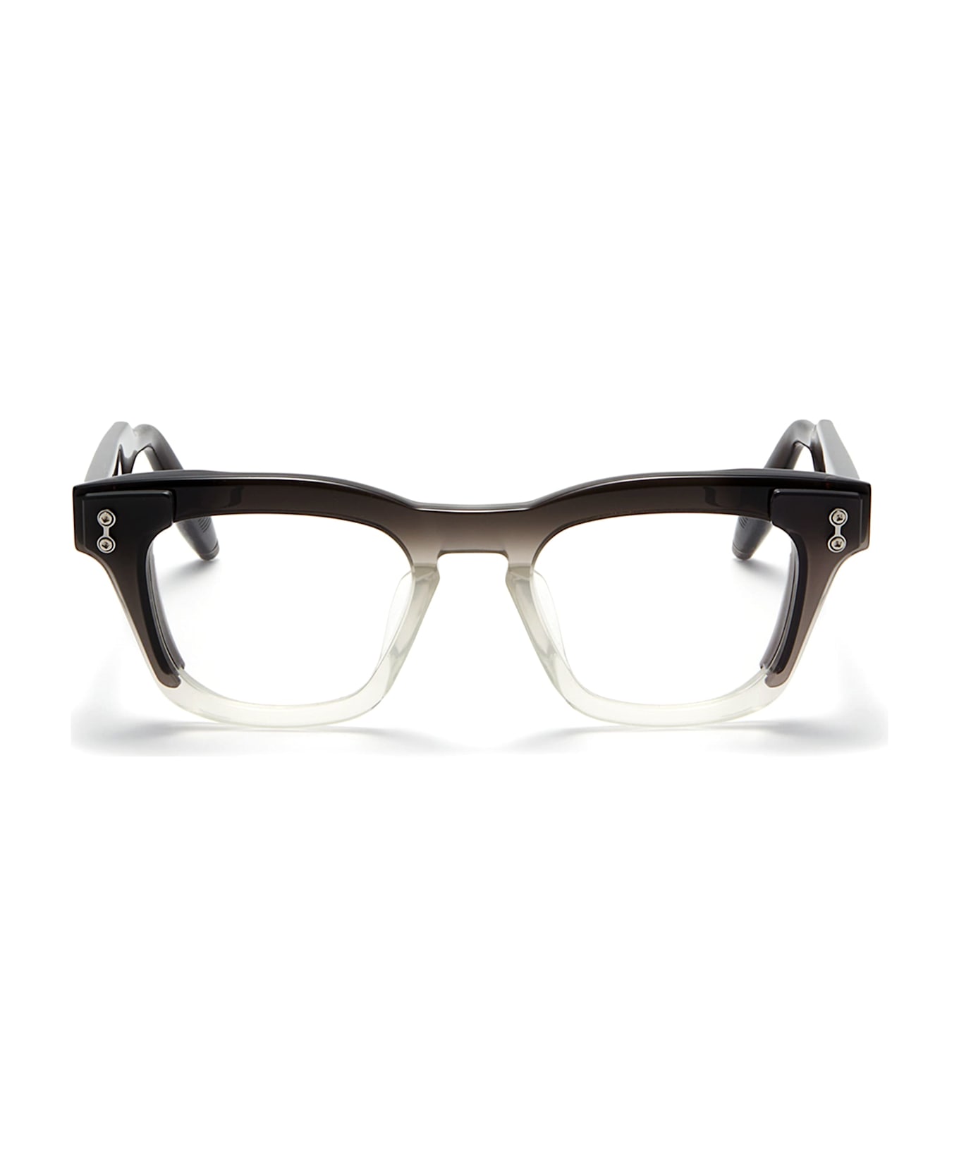 Akoni ARA - MATTE BLACK TO CLOUDY WHITE RX (AKX-104C-49) are squared elegant eyeglasses made in Japan. They feature black to white Japanese acetate frame with layered details, matte black integrated side shield inserts, custom acetate temples with Akoni round temple tips.