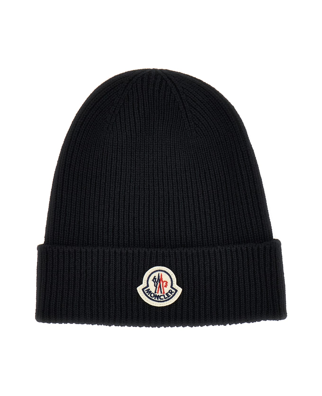 Beanie hat realized in pure virgin wool enriched by contrasting logoed patch at the front. -Folded hemline -Unlined