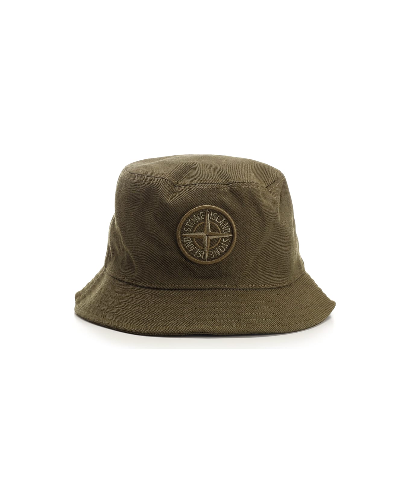 Green wool blend 'fisherman' hat with embroidered Stone Island logo.