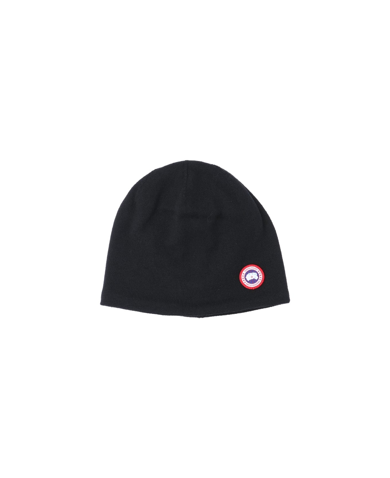 Canada Goose logo ribbed beanie in black wool with front logo patch. Composition: 100% Wool