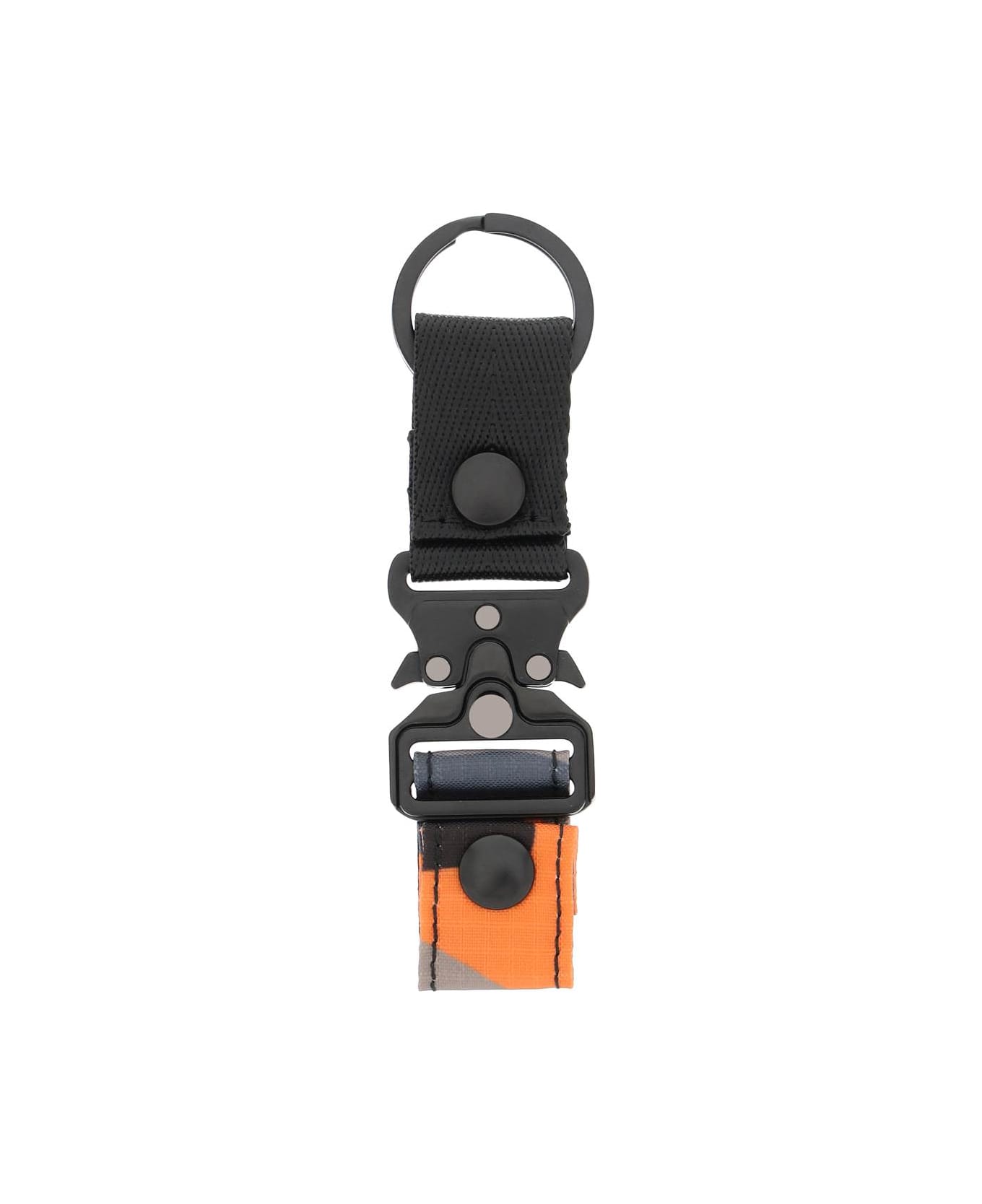 DSquared2 'Ceresio 9' key ring composed of a part in camouflage nylon ripstop fabric with press-stud closure and a webbing nylon section with metal key ring. The two parts can be separated thanks to the middle joint buckle. Matte tone-on-tone metalware.