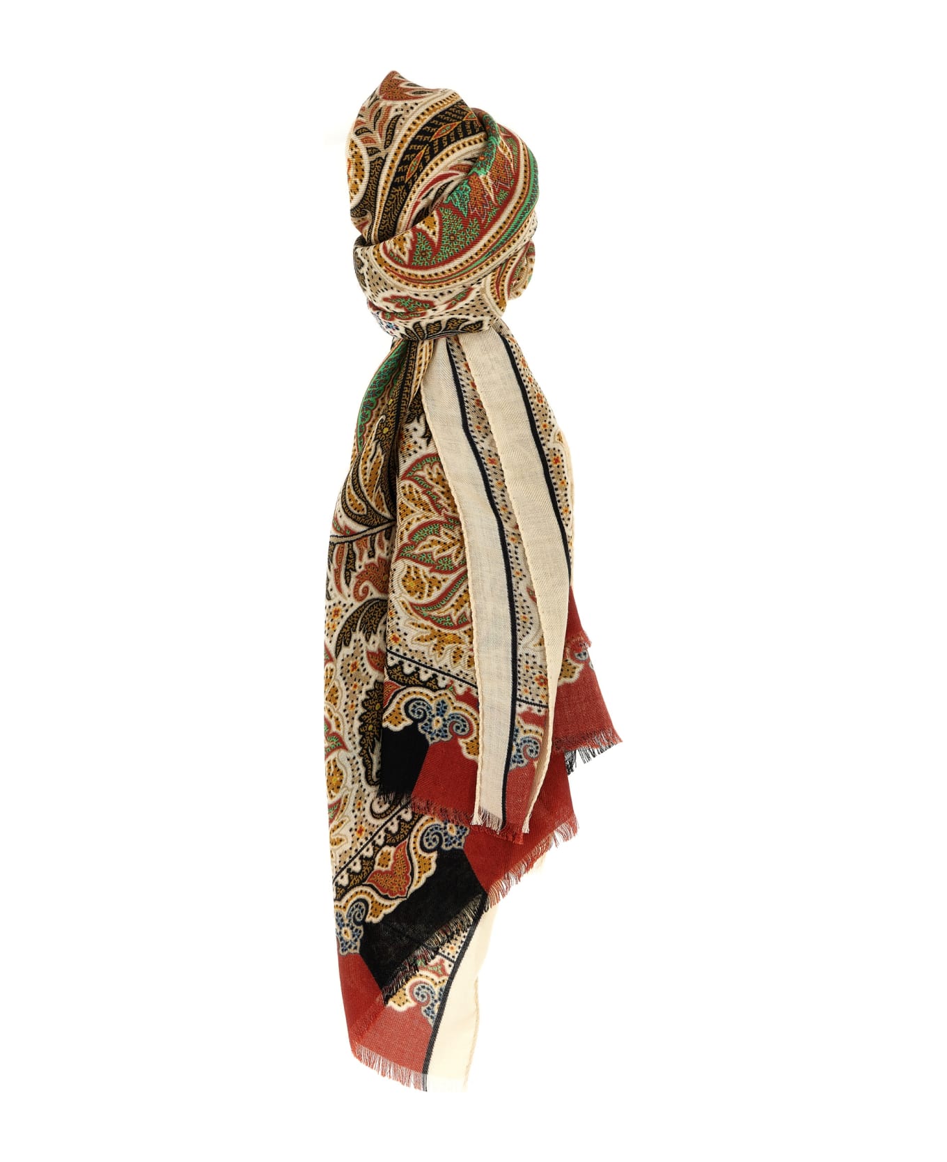 Wool and silk scarf with 'Paisley' print, fringed edges. Composition: 70% wo, 30% se
