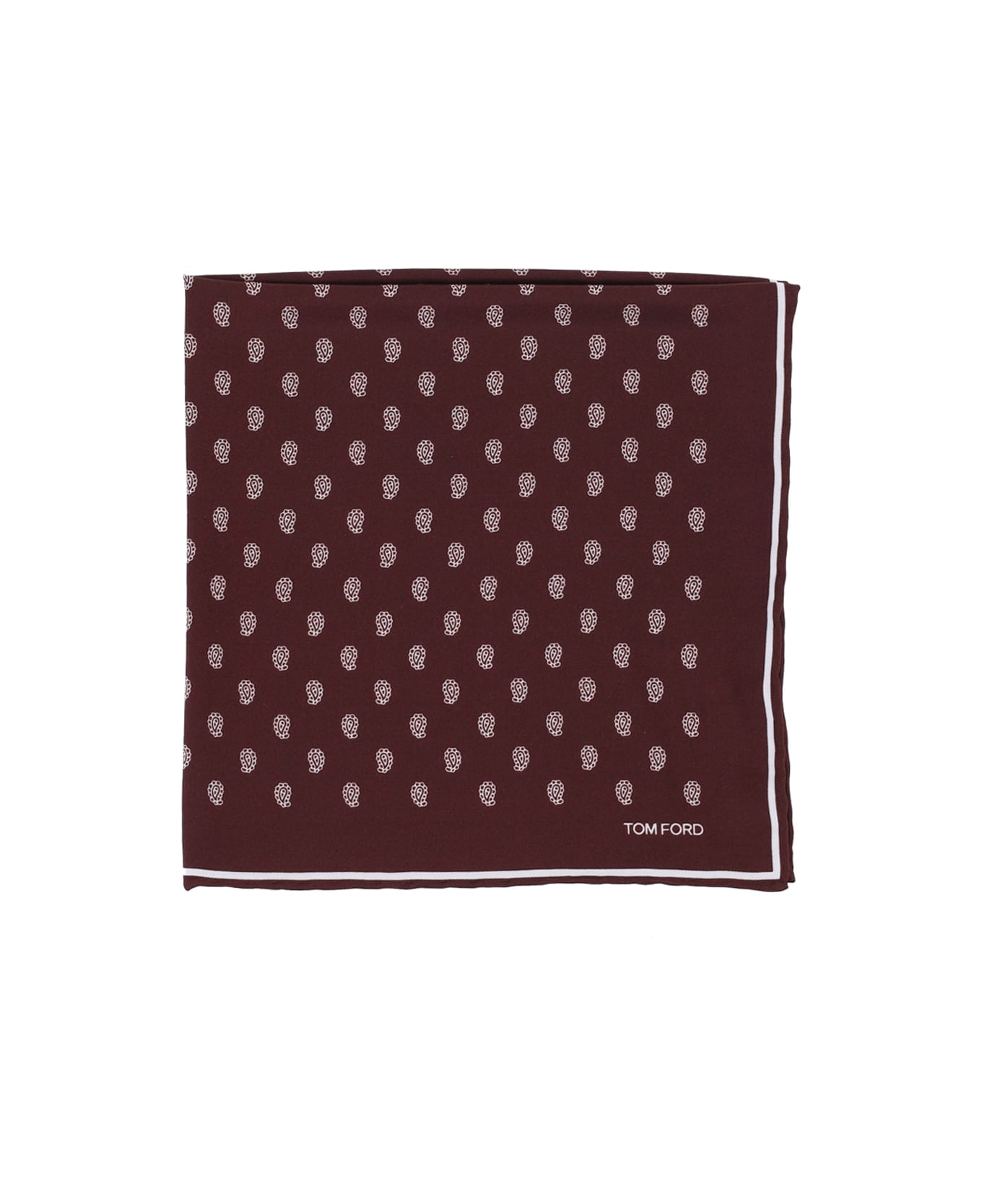 Tom Ford silk twill pocket handkerchief in dark shades, all-over white print, front logo print.