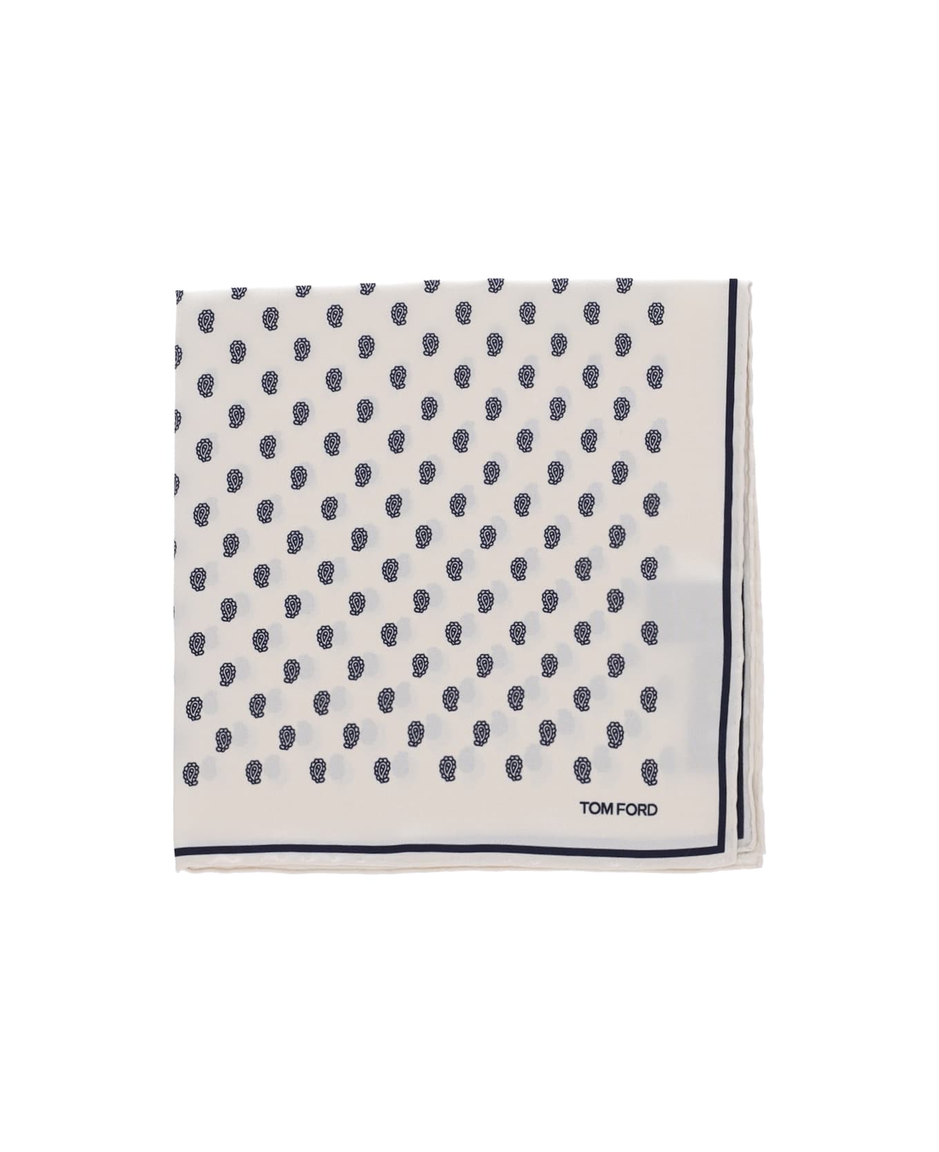 Tom Ford silk twill pocket handkerchief in white with all-over print, front logo print.