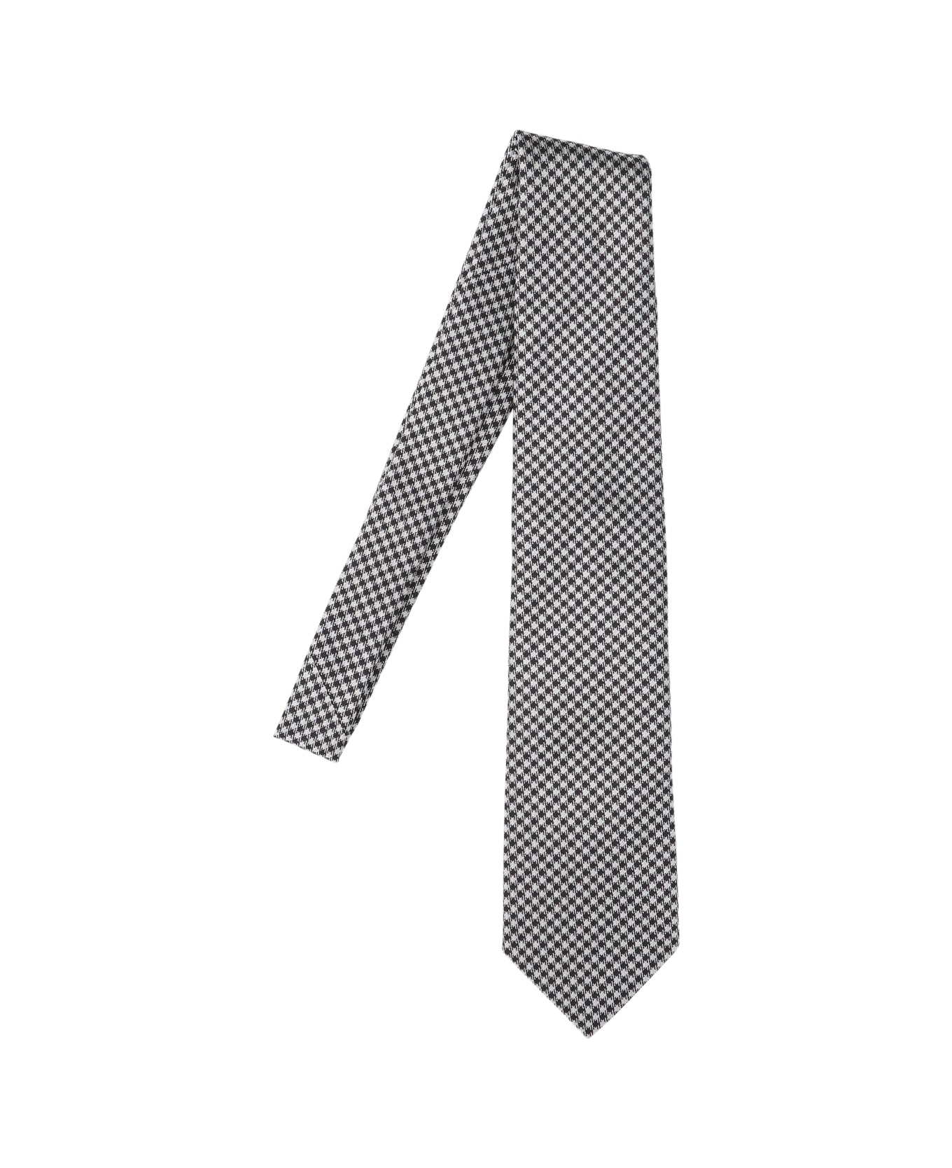 Tom Ford silk tie in white with houndstooth pattern black details, adjustable.