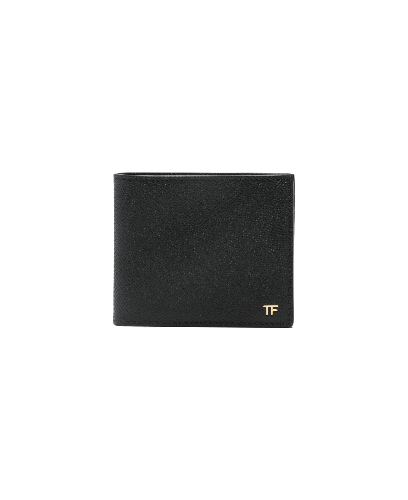 black grained texture gold-tone logo lettering bifold style internal card slots internal note compartments