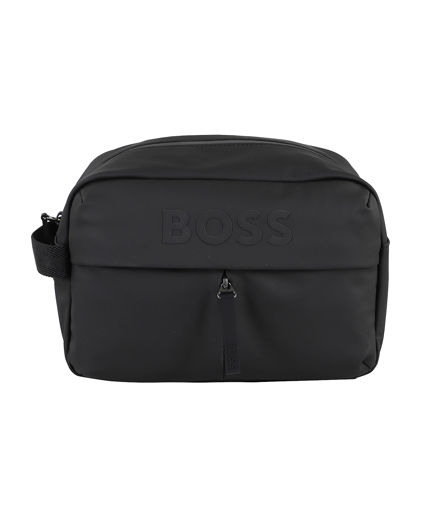 Stormy Beauty Case - Boss - Black color - Single compartment with interior pockets - Exterior zippered pockets - Applied tone-on-tone front logo - Top zippered closure - Side handle - Dimensions: 25 x 18 x 13 cm.