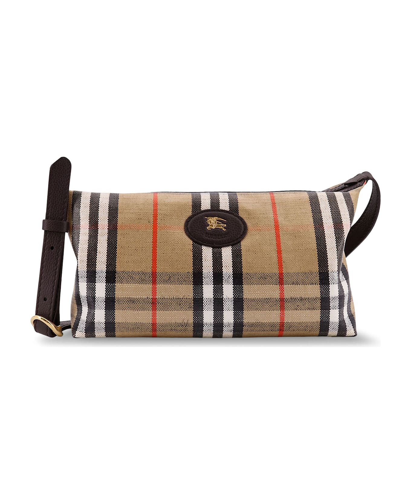 Adjustable leather shoulder strap Zip closure with double slider Leather patch with metal EKD detail Leather trim Traditional Check pattern Made in Italy 69% cotton, 21% viscose, 10% linen W: 26cm x H: 14cm x D: 11cm SKU: 8119947A2021