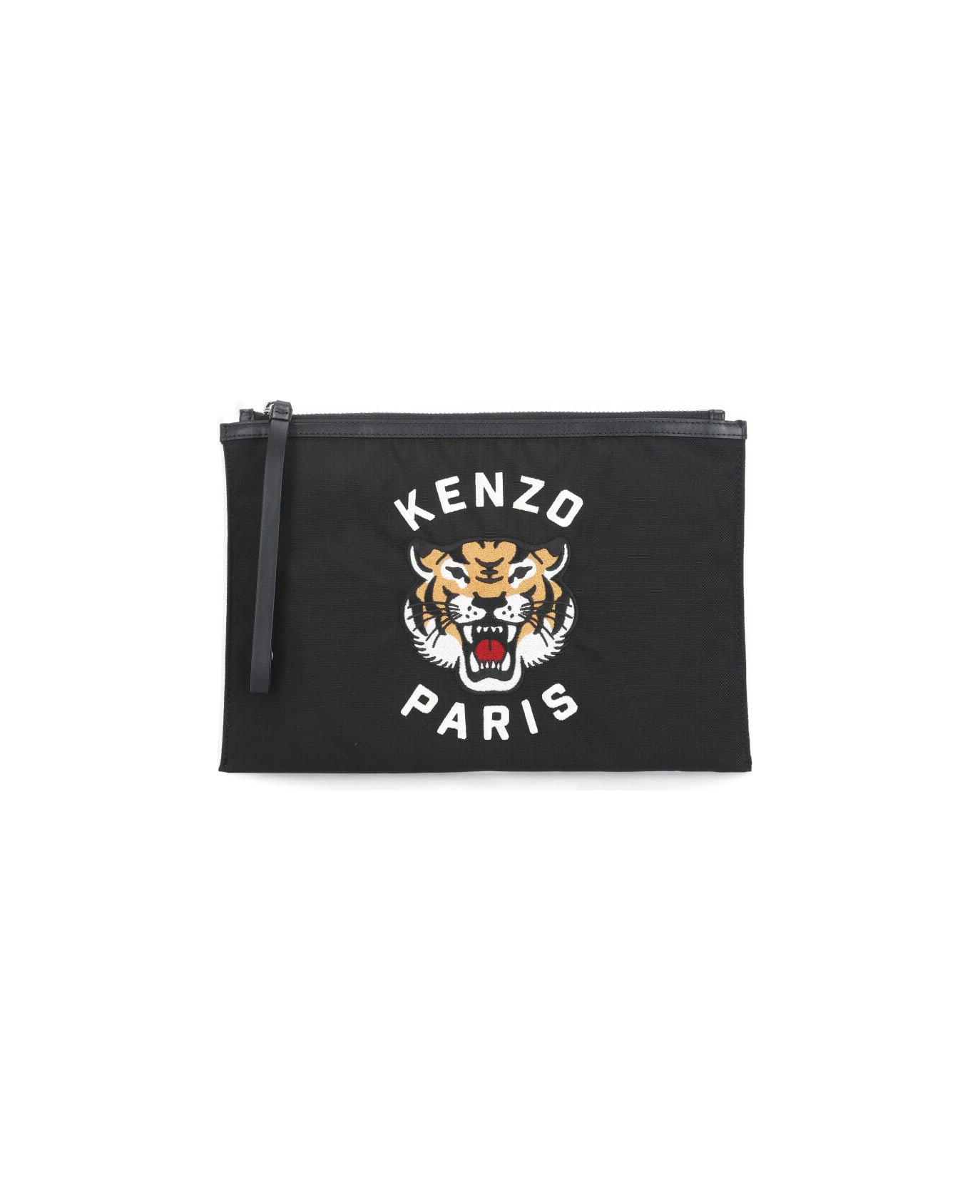 - Black Kenzo clutch bag for man - One main zip compartment - Front contrasting color Lucky Tiger logo