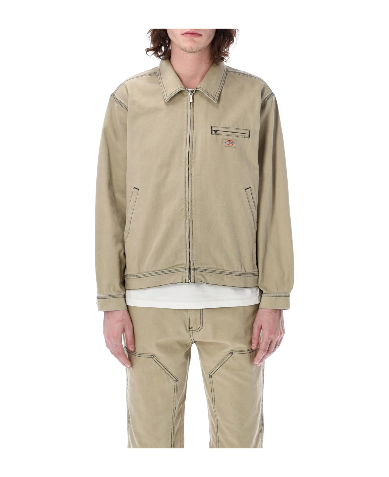 Madras Duck Canvas Jacket By Dickies. Featuring: Zip Up Fastening Point Collar Two Welt Pockets And Single Zip-up Chest Pocket For Essentials Long Sleeves Adjustable Cuffs Label At Left Chest Adjustable Hem Model Is 1,90 M Tall And He Is Wearing Size L
