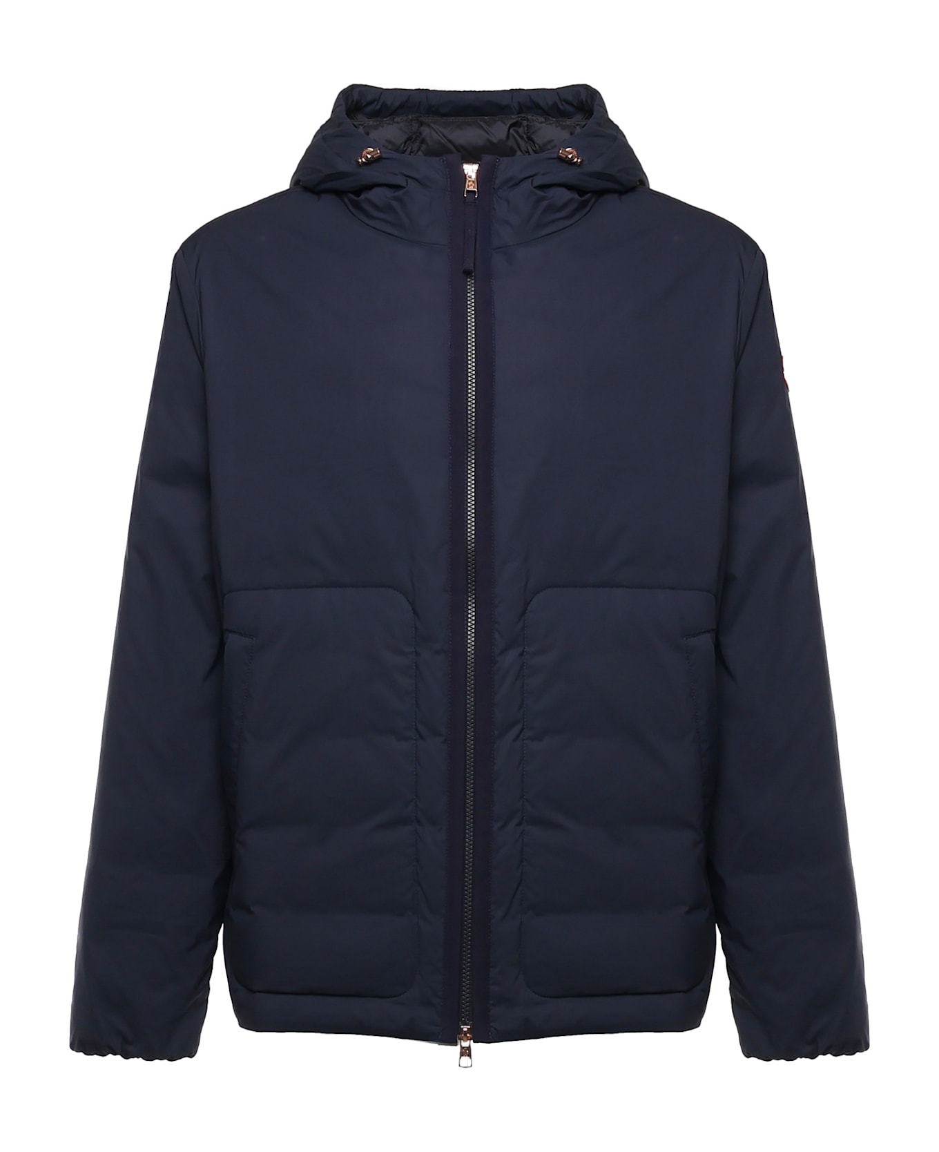 -Made of cotton and nylon blend -Logo patch -Zip pockets -Front zip closure -Hood -Size shown in photo is 3 -Color: Navy