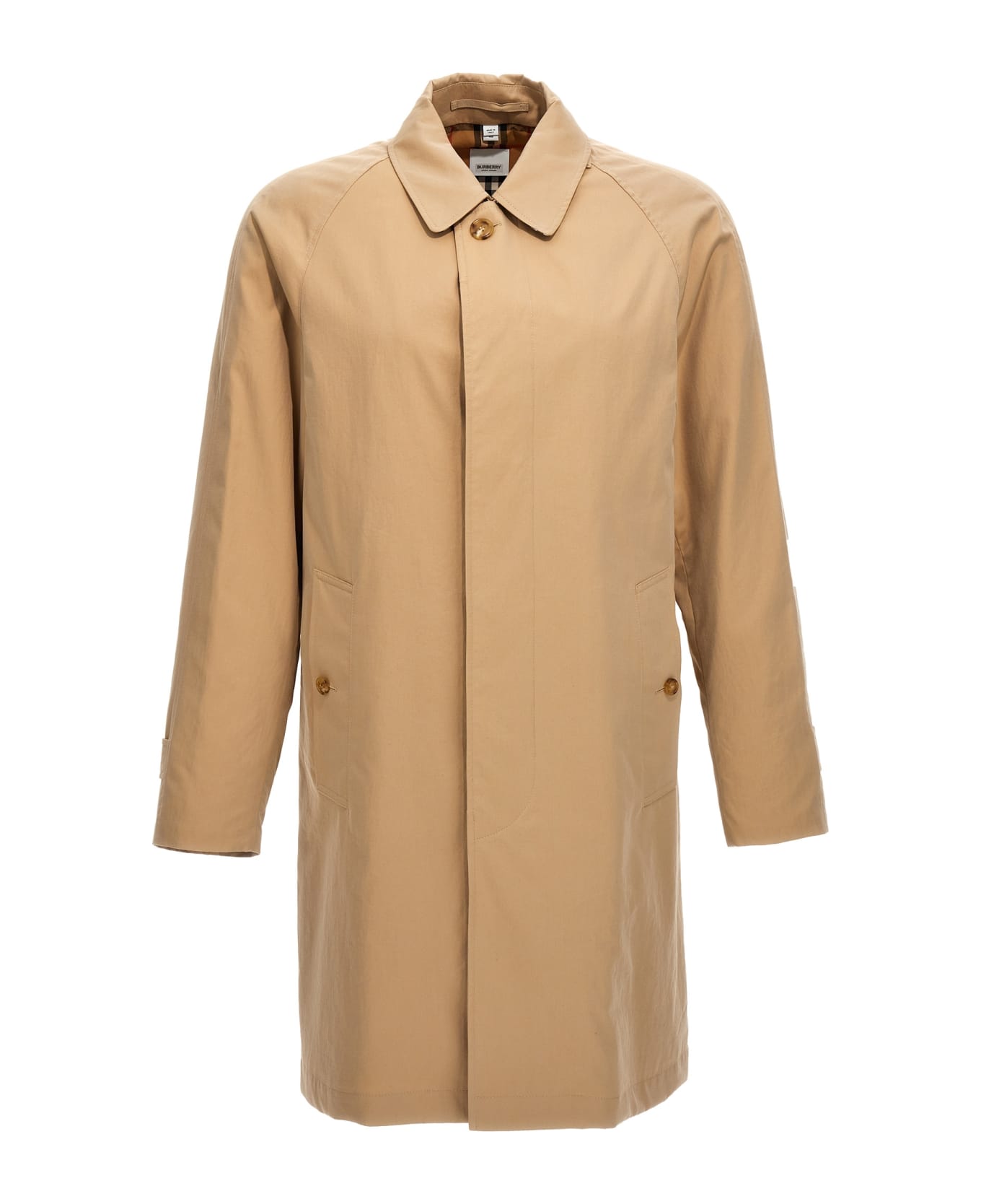 Camden cotton trench coat with button closure, pockets, long sleeves, back split, and interior check lining. Medium length model 98 cm. Composition: 100% cotton
