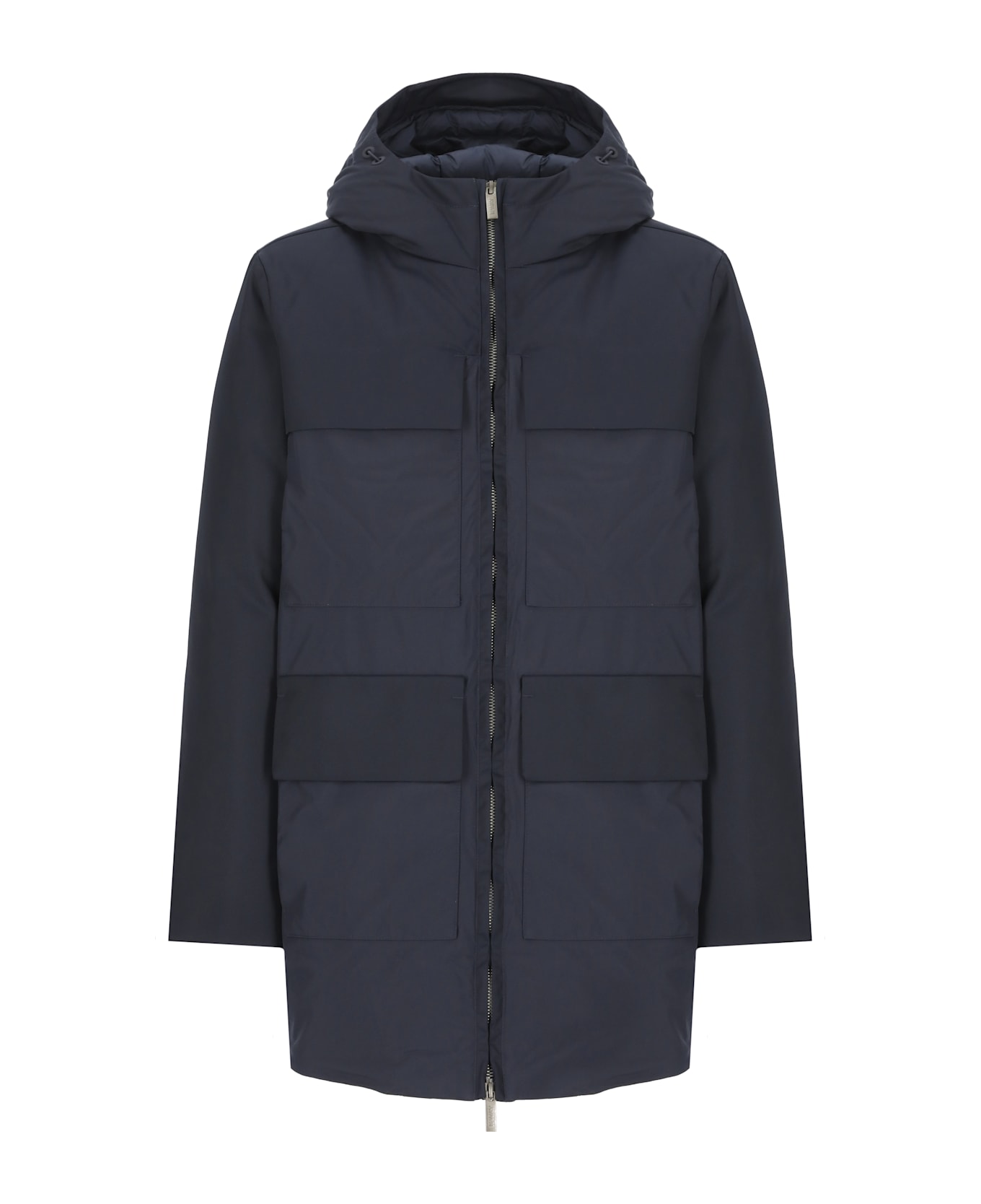 - Blue K-Way jacket for man - Hood - Long sleeves - Four front flap pockets - Front zip fastening