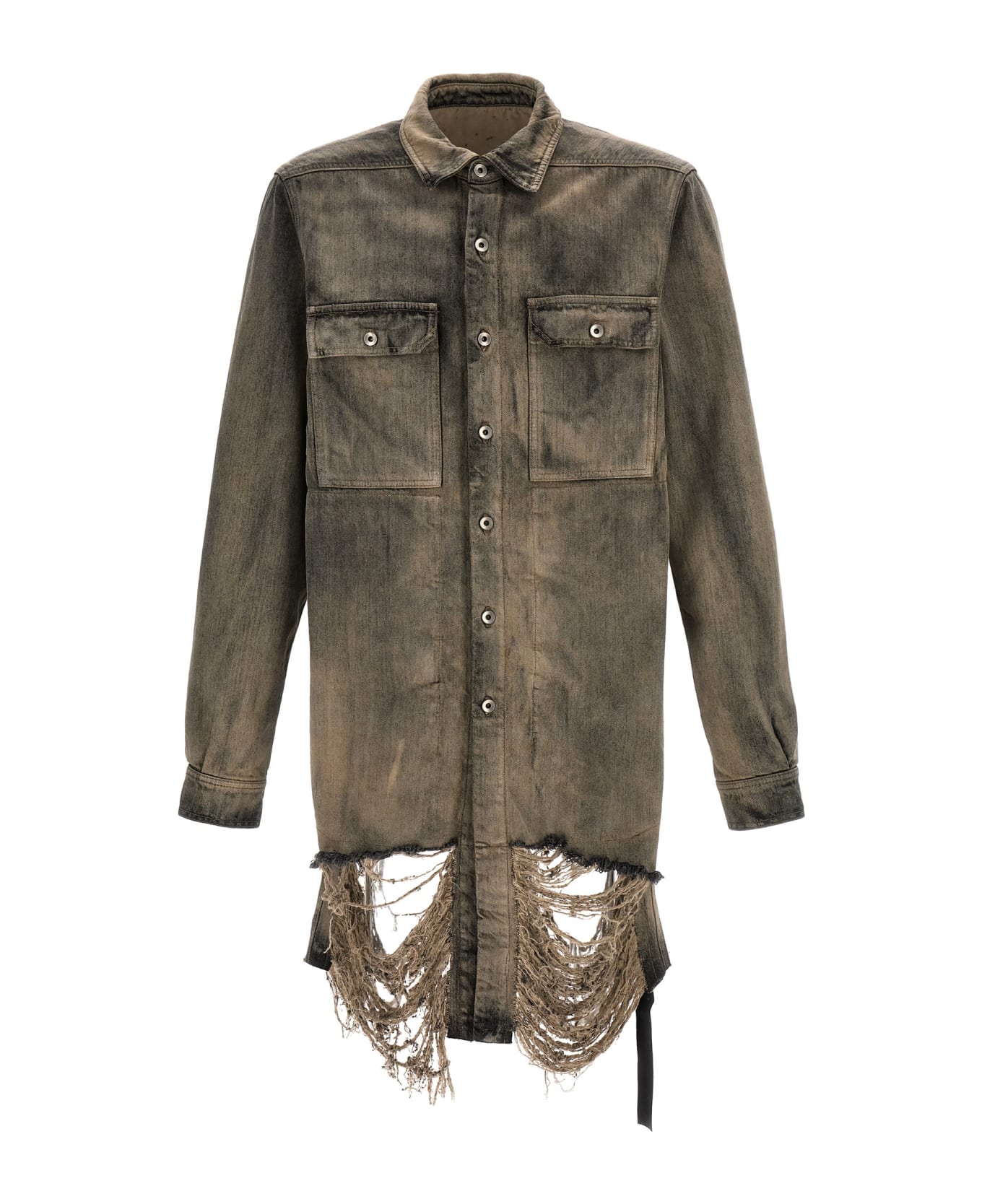 'Outershirt' destroyed effect cotton denim jacket with button closure, pockets, long cuffed sleeves.