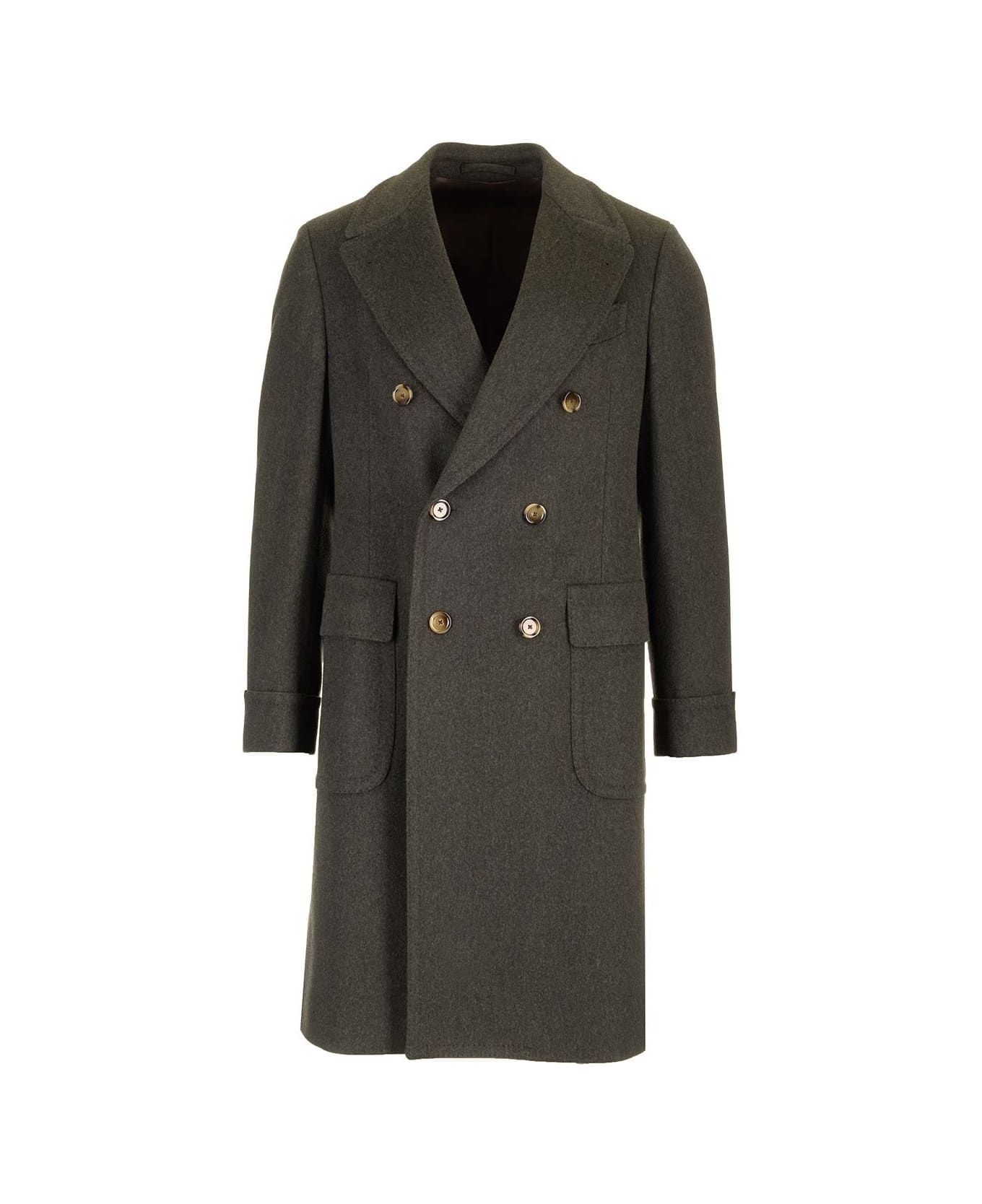 Double-breasted coat with martingale drop 7 in wool and cashmere patch pockets with flap central vent