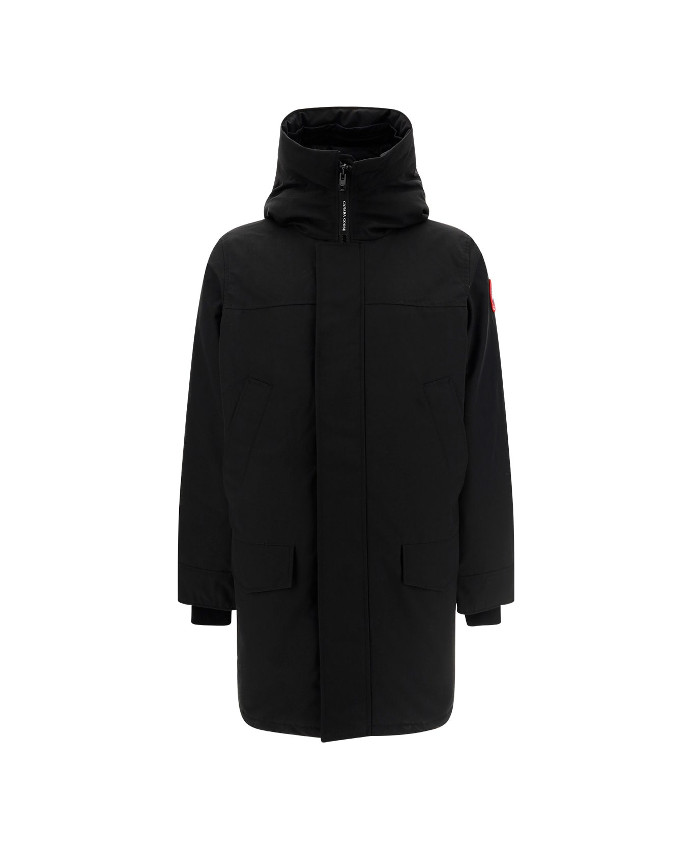 Langford parka jacket by canada goose, hooded high-neck model, front zipper closure with velcro strap, elastic ribbed cuffs, midi model, two large patch pockets on front with flap for closure, patch with iconic brand logo applied on left arm. Composition: 100% % Nylon