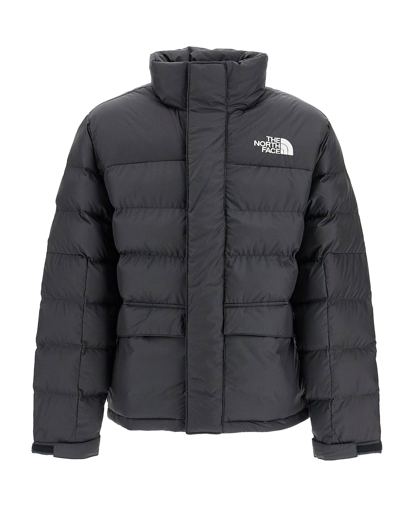 The North Face Limbara Puffer Jacket is made of ripstop fabric with DWR finish without PFC for enhanced water protection and synthetic padding. It features a zip closure with velcro wind flap, embroidered logo lettering on the chest and back shoulder, detachable hood, double-entry pocket, and adjustable drawstring at the bottom. The model is 182 cm tall and wears size L.