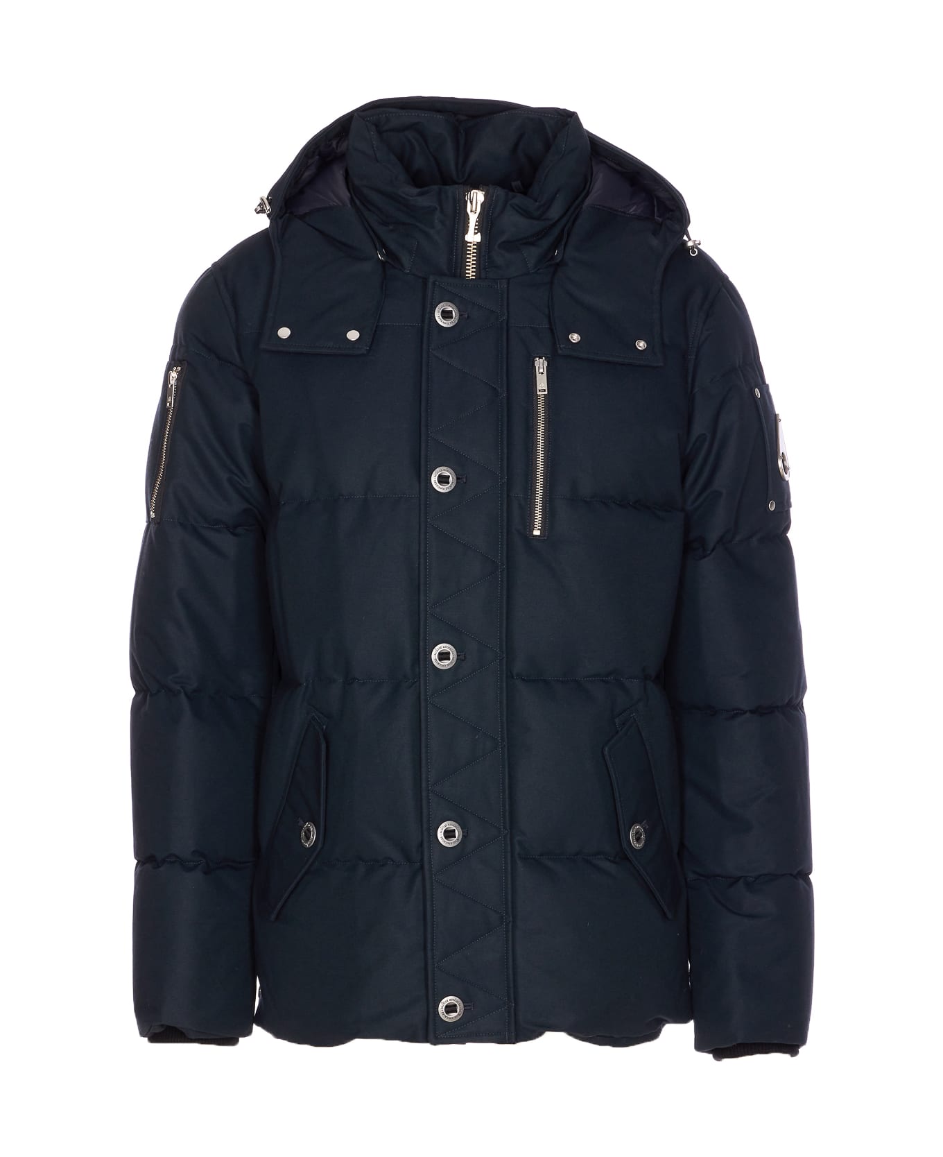 Moose Knucles blue Original 3q jacket, zip and buttons closure, long sleeves, pockets, removable hood detail, padded, lateral patch logo Composition: 74% Cotton, 26% Nylon, 100% Recycled Nylon, 90% Duck Down, 10% Feathers