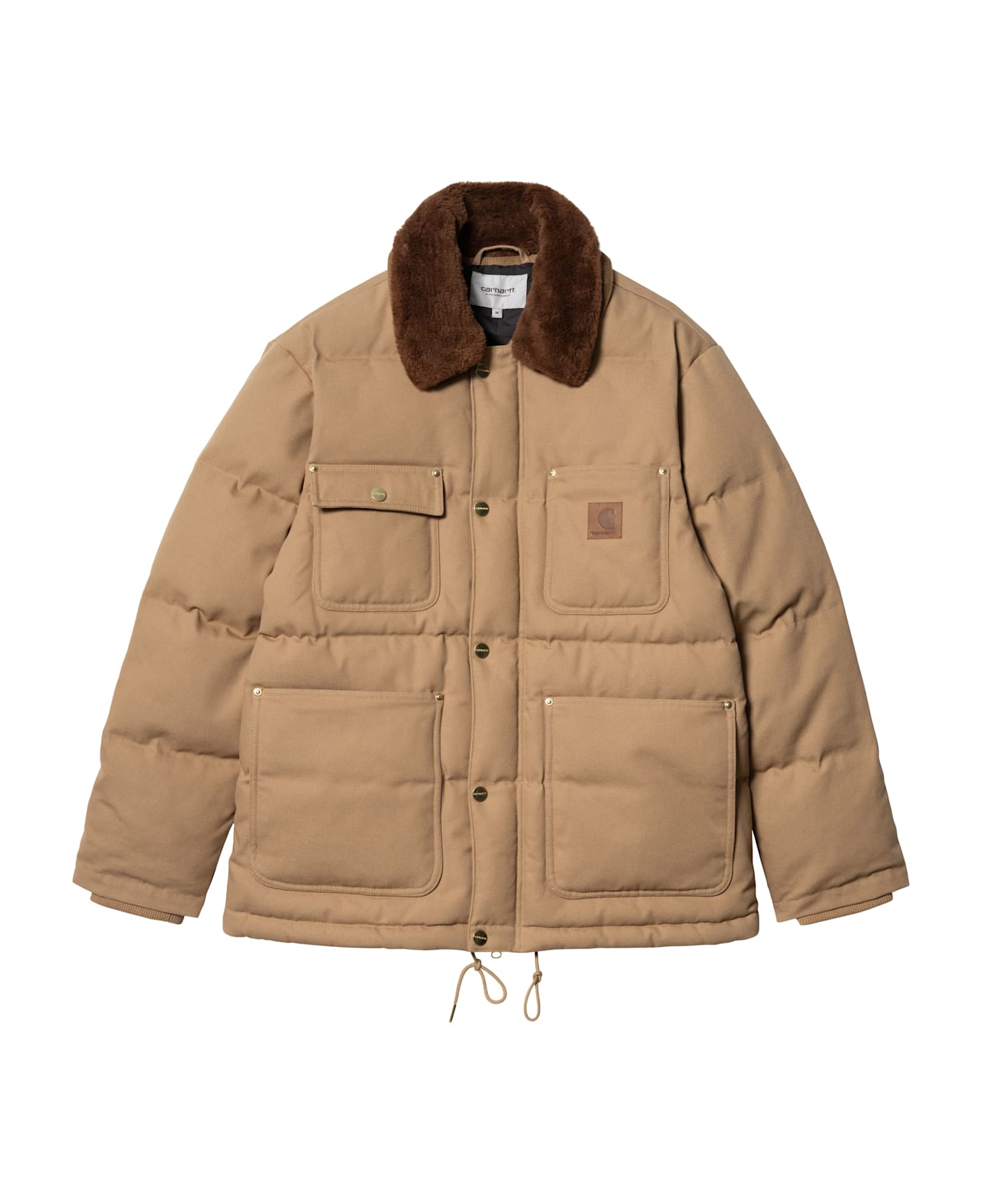 CARHARTT JACKET, Crafted from high-quality materials, this jacket is designed to withstand everyday wear and tear, making it perfect for work or play. Featuring a classic cut and a relaxed fit, it offers exceptional freedom of movement. The Peanut color gives it a warm and cozy look, easily paired with various outfits. Multiple pockets, both internal and external, ensure enough space to store essentials.