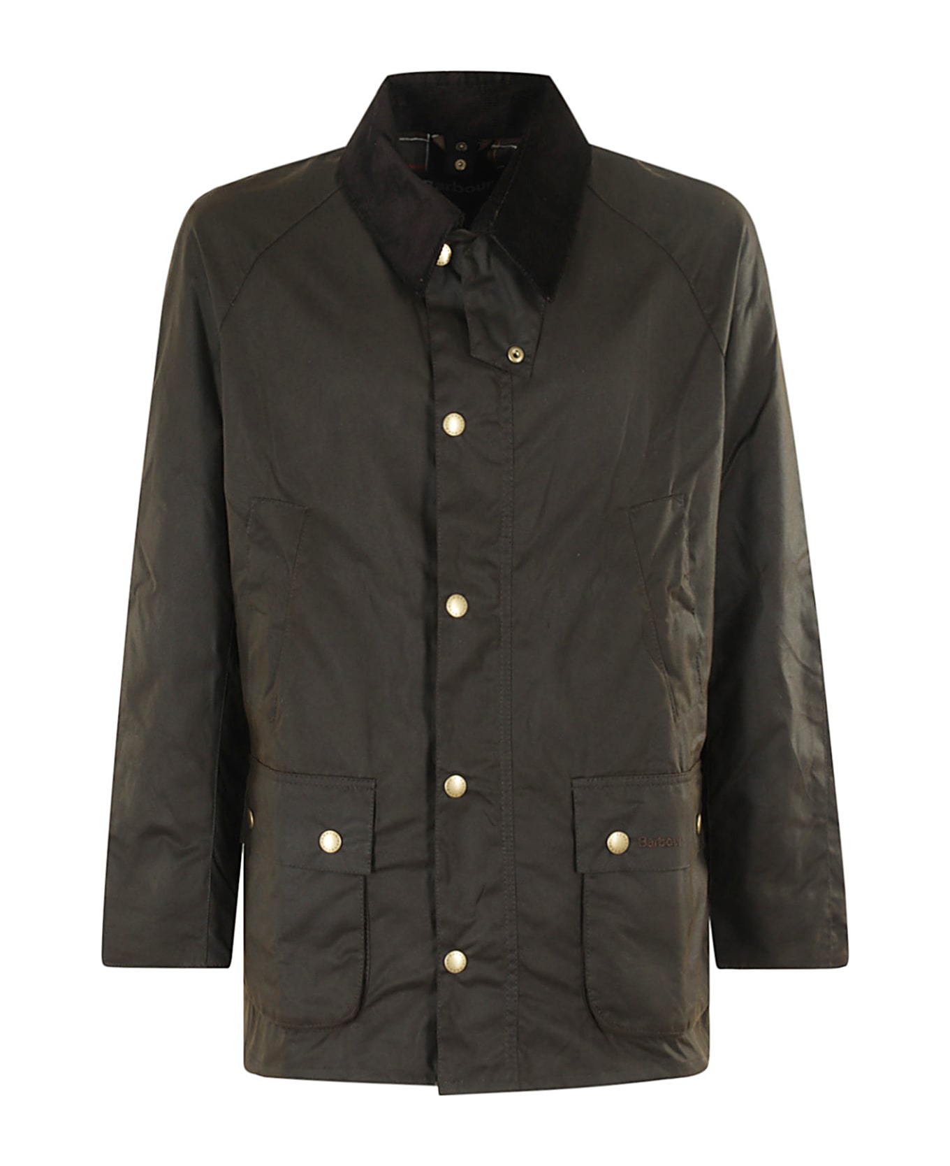 Ashby Wax jacket -Barbour -Olive green color -Long sleeves -Center button and zipper closure -Front pockets -Velvet ribbed collar