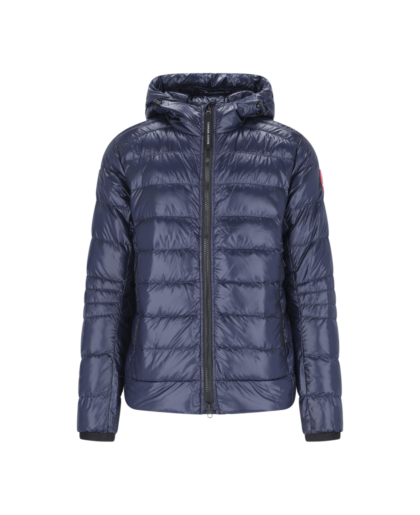 Canada Goose Crofton hooded jacket in blue quilted nylon with zip closure, foldable style, elastic cuffs, straight hem. Composition: 100% Polyamide