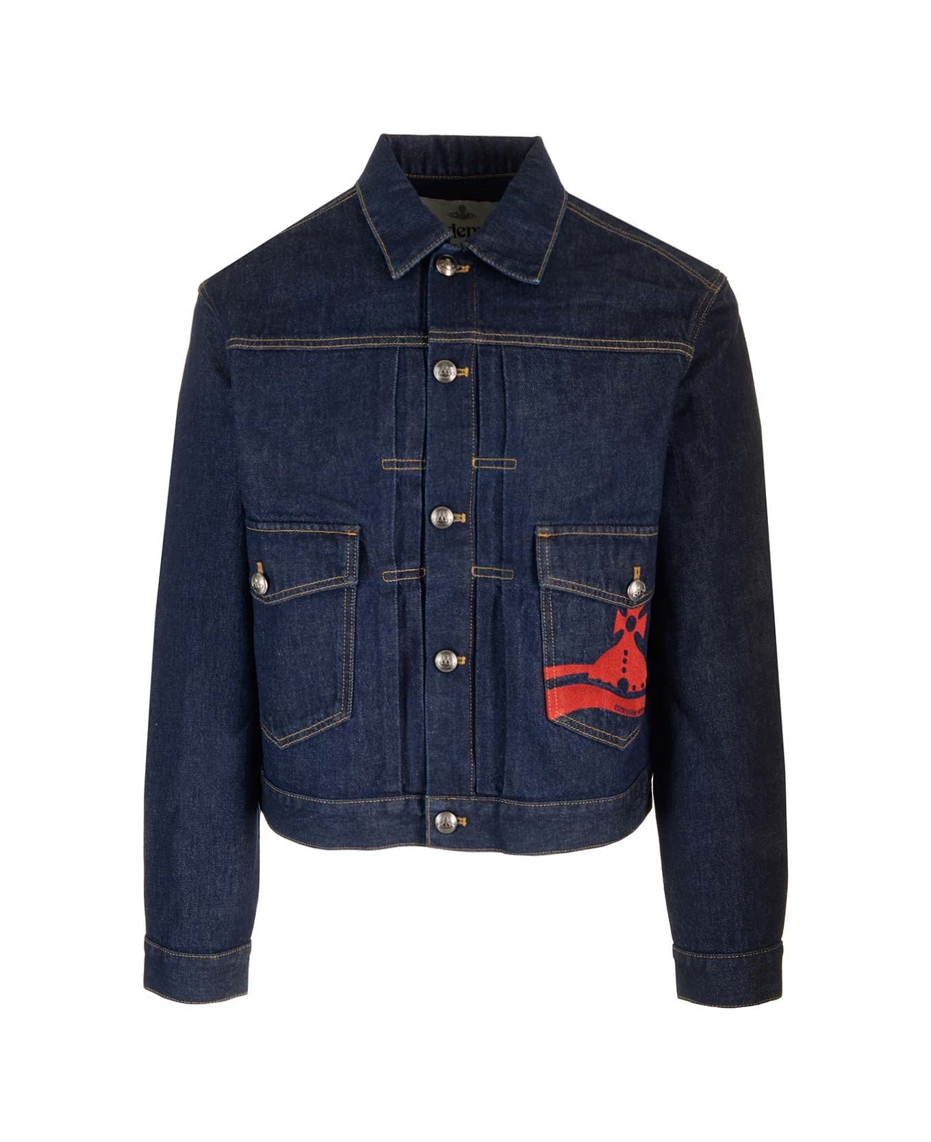Denim Marlene jacket Features orb-embossed buttons Classic pointed collar Front pockets Woven label at neckline
