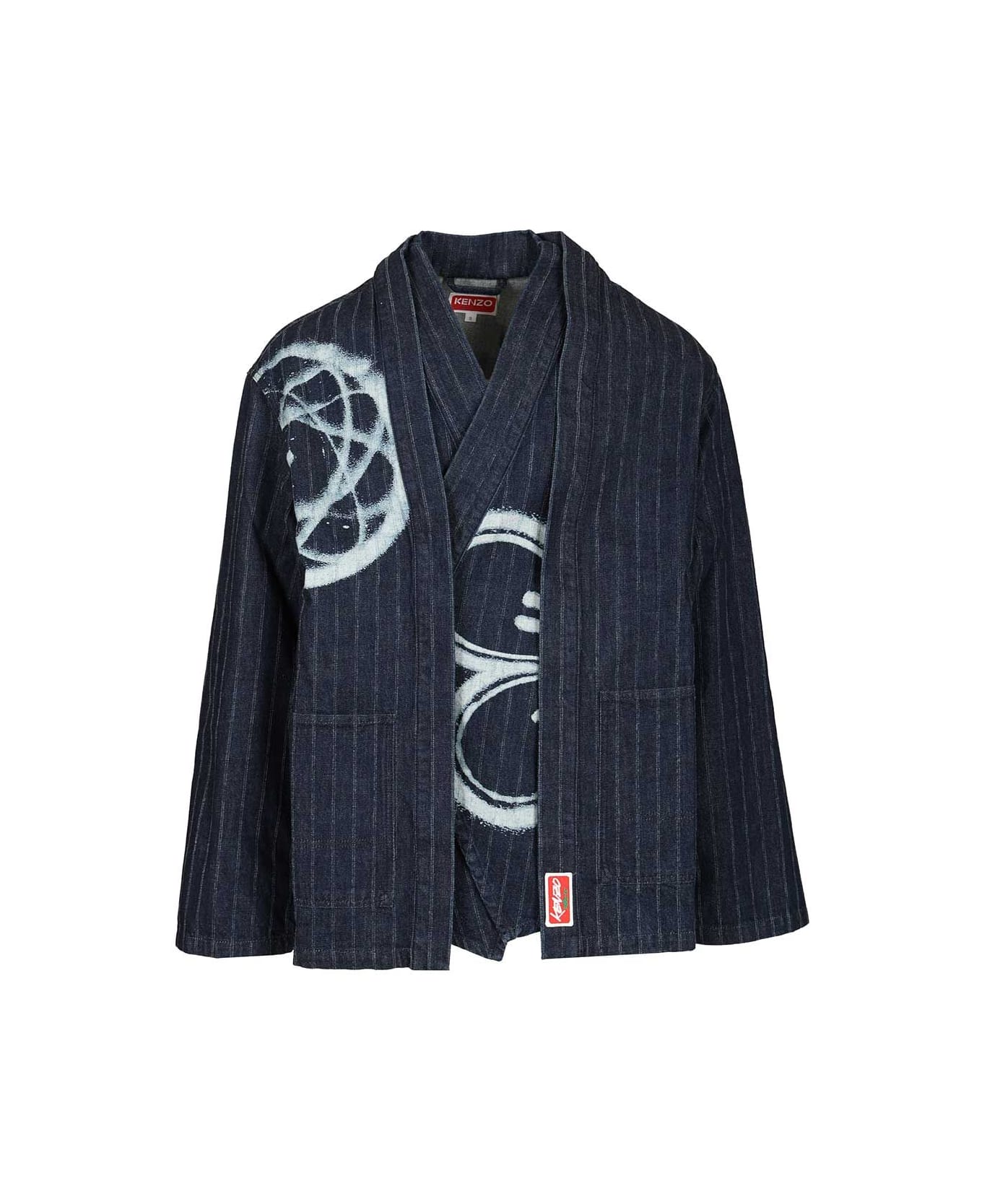 Kenzo 'Kenzo x Futura 2000' Japanese denim kimono jacket, belt fastening, contrasting Kenzo Paris reworked by Futura 2000 on the belt.