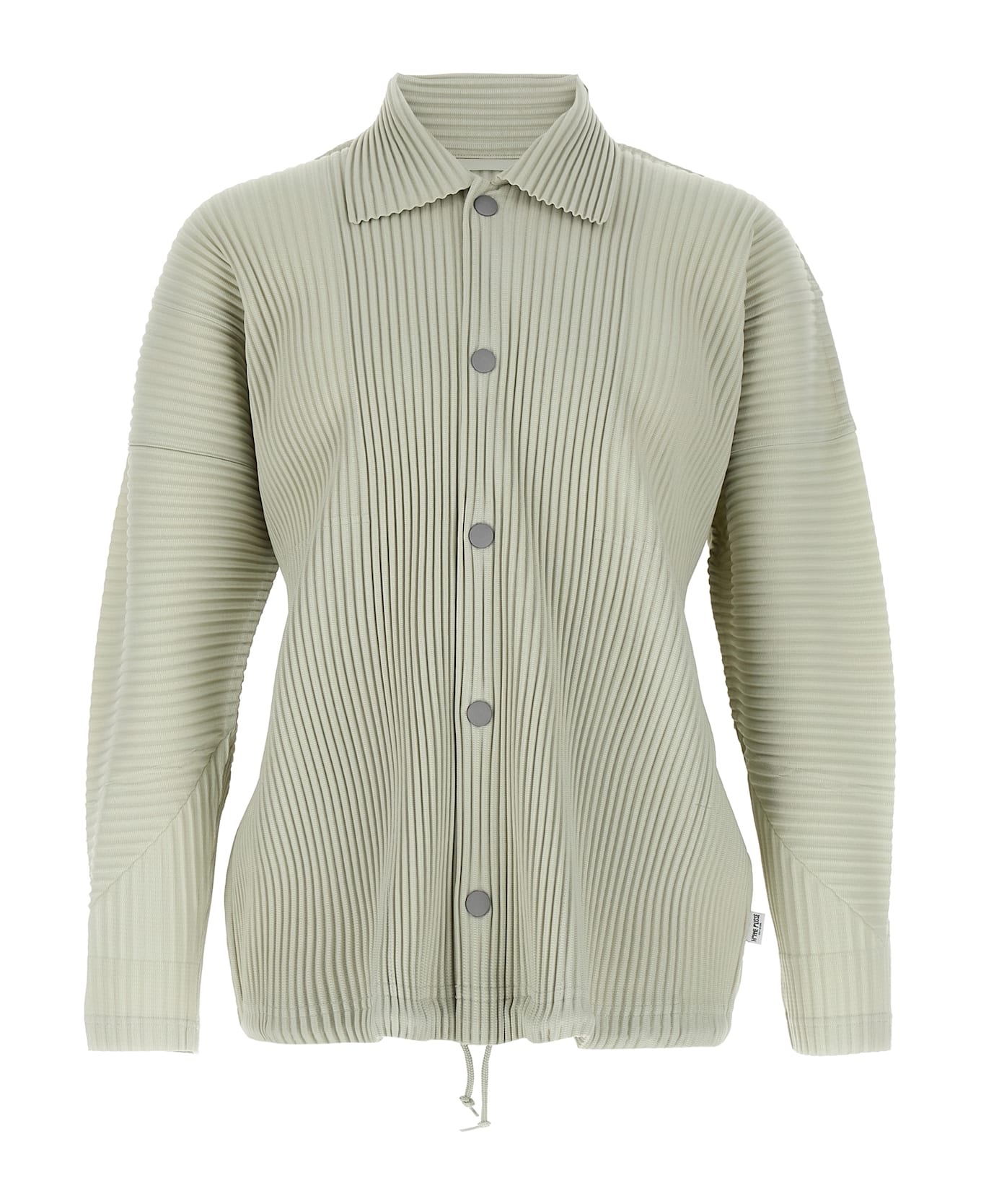 'MC March' pleated jacket with shirt collar, front snap button closure, pockets, long sleeves, drawstring at the hem.