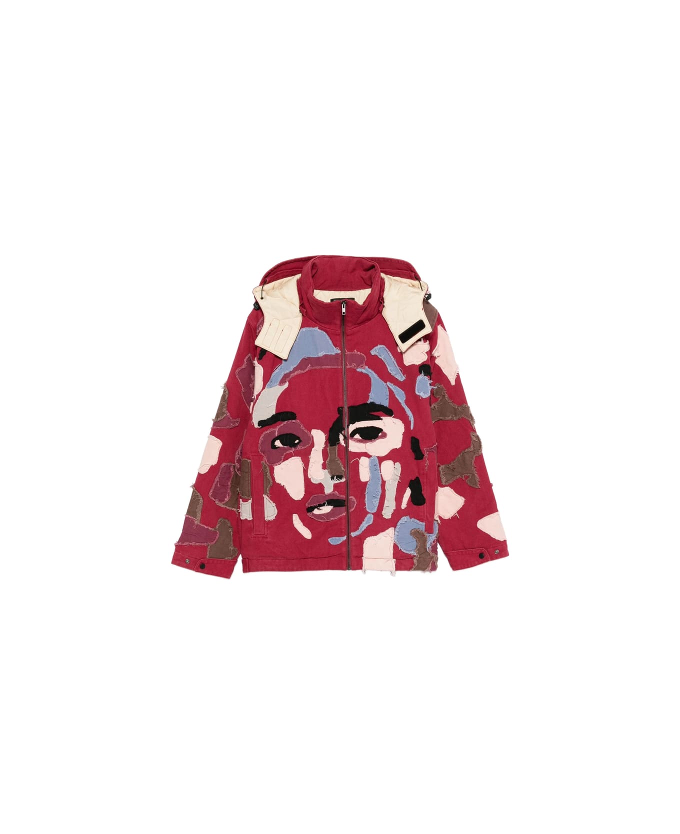 burgundy appliqué detailing classic hood zip fastening long sleeves buttoned cuffs