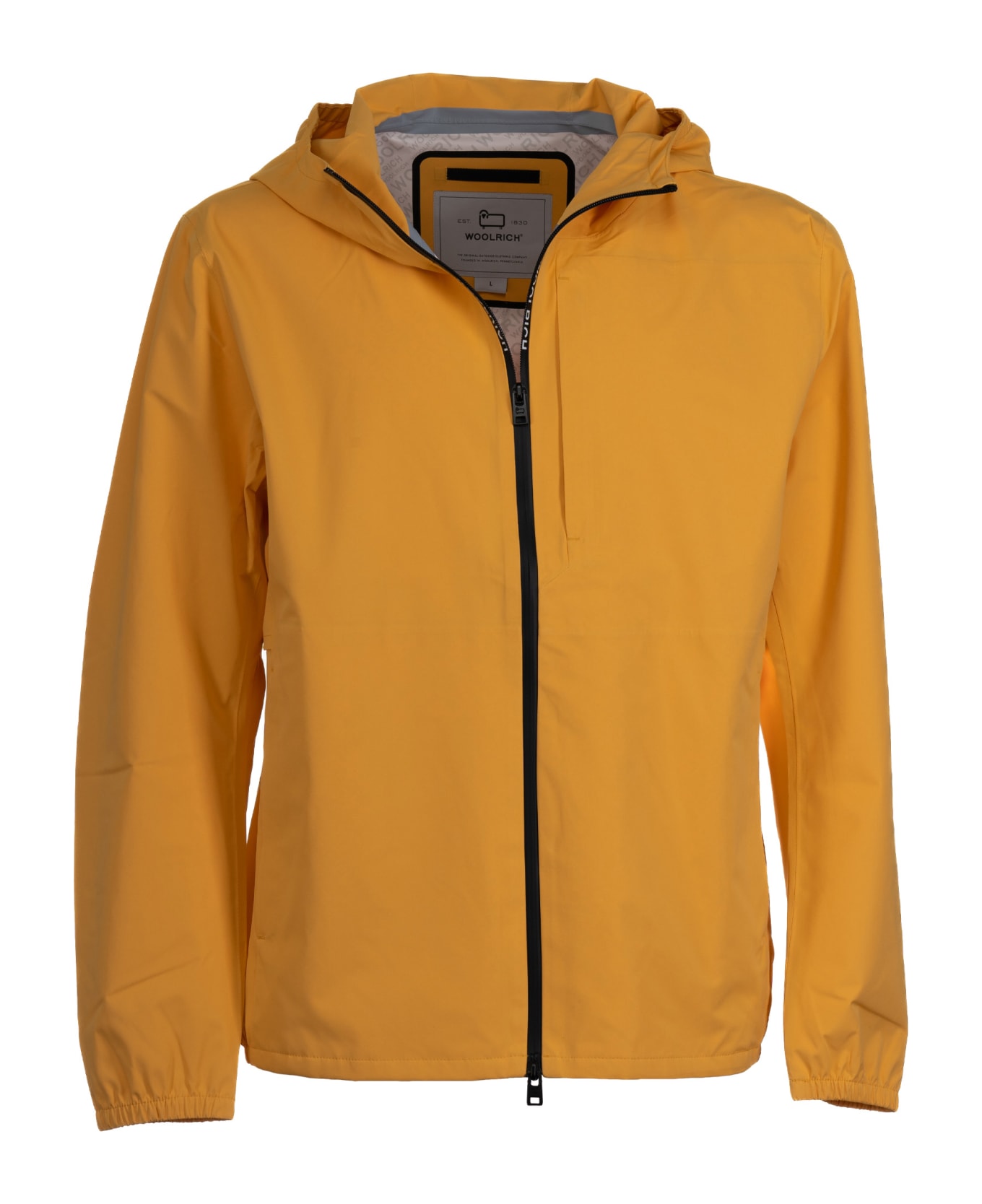Yellow jacket with hood and zip closure from Woolrich. - fit the true size - composition: polyammid - made in extra EU