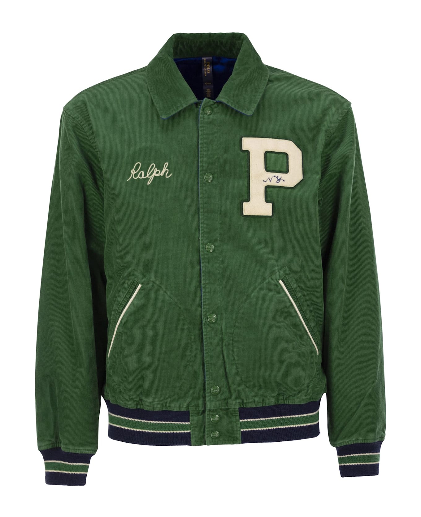 This Letterman jacket is made from fine corduroy and features one side in elegant satin. Each side is finished with a mix of appliqués and chain-stitch embroidery that pay homage to the brand's founder, his hometown, and his passion for sports. - Straight collar - Snap closure - Exclusive enameled snaps - Long sleeves with striped ribbed cuffs - Two bias pockets at the front waist. Striped ribbed hem - Exterior: chenille applique with letter P and NY embroidery on left side of chest, chainstitch Ralph embroidery on right side of chest, chainstitch Bronx Lions embroidery in center back. - Opposite side: felt applique with lion on left side of chest, Eastern League C 66- 67 State Champs RL Athletic Team Captain #3 embroidery in chain stitch on right side of chest, applique with number 67 on right sleeve, R. Lauren embroidery in chain stitch under right pocket DESIGNER ID: 710944510 001