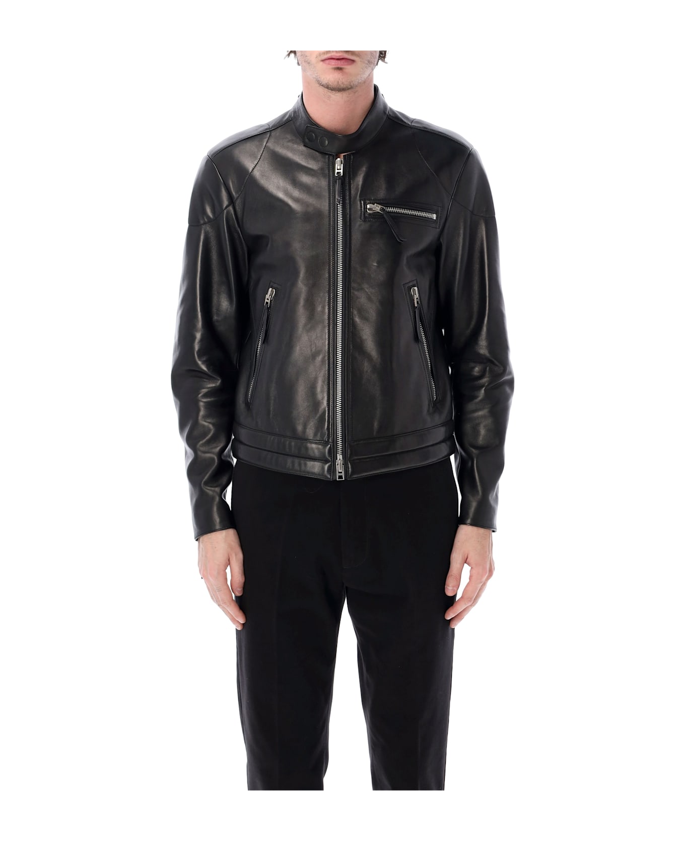 The Nappa Grain Leather Biker Jacket By Tom Ford Delivers A Modern Interpretation Of An Iconic Silhouette. Crafted From Supple Grain Nappa Leather, It Features A Sleek, Structured Profile Enriched By Refined Construction Details. Designed To Elevate Contemporary Wardrobes, It Balances Bold Character With Understated Elegance. Nappa Leather Slim, Structured Fit Stand Collar With Snap-button Closure Front Zip Fastening Zipped Chest Pocket Zipped Side Pockets Zip Cuffs Clean-lined Biker Construction Andrea Is 1,90 M And Wears Size 52