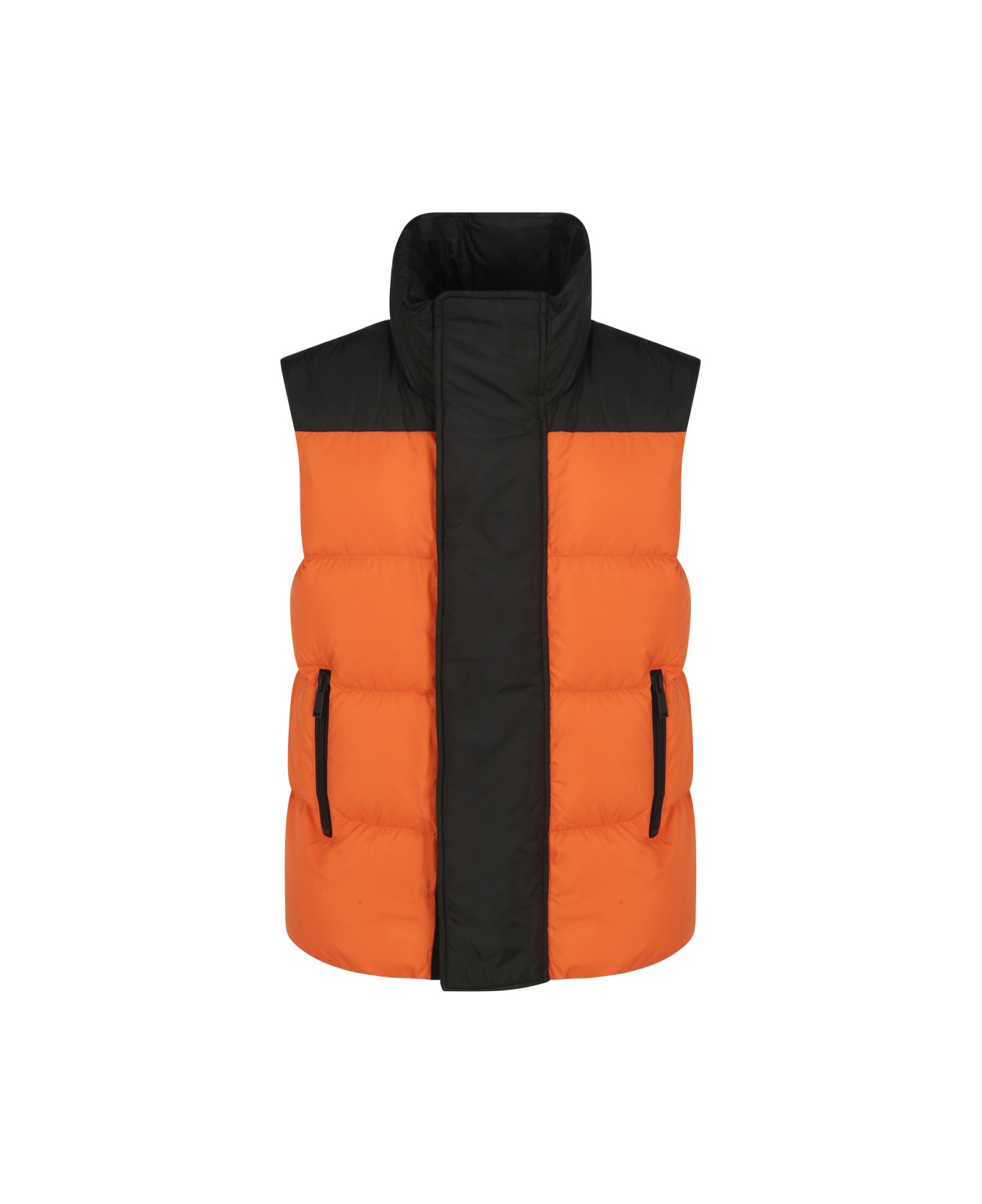 Vest by dsquared2, padded sleeveless design, adjustable velcro crew neck, zipper and velcro closure on front, iconic brand monogram press-stamped on slider, two zipper patch pockets on front, adjustable drawstring waistband.