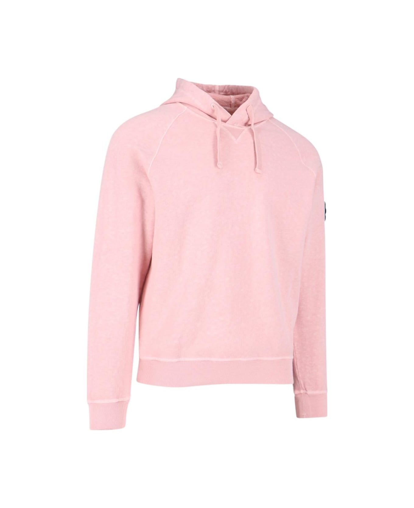 Stone Island '62160' sweatshirt, pink cotton, usured details, drawstring hood, logo sleeve patch, ribbed trim, straight hem.