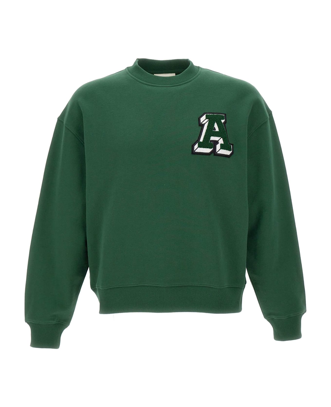 Axel Arigato "College A" men's organic cotton sweatshirt. Color: Dark Green. Ribbed crew neck, cuffs and hem. Sponge logo application on chest. Oversized fit. Composition: 100% Cotton;