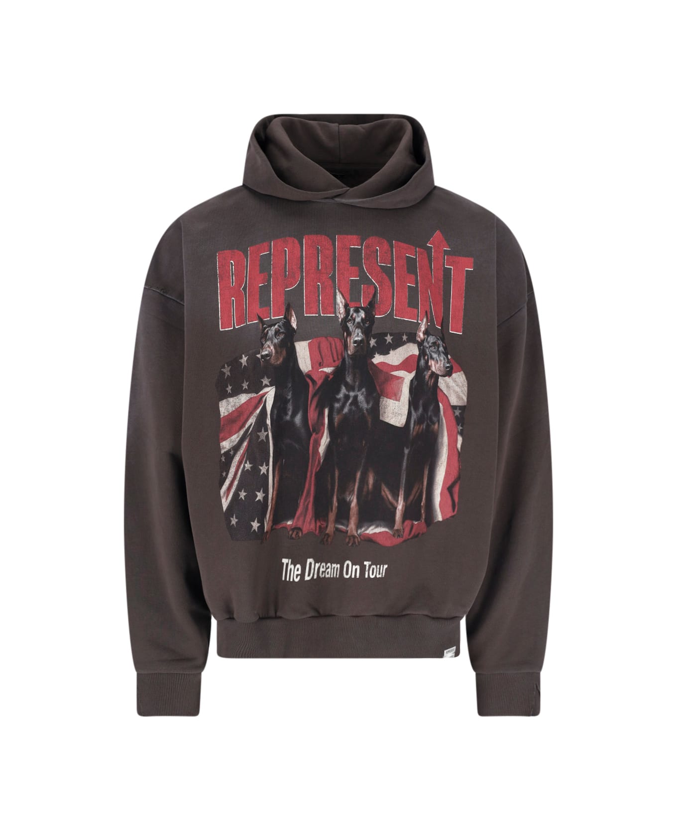 - Hoodie "Dream On Tour" in brown cotton - hood - long sleeves - contrast print front and back
