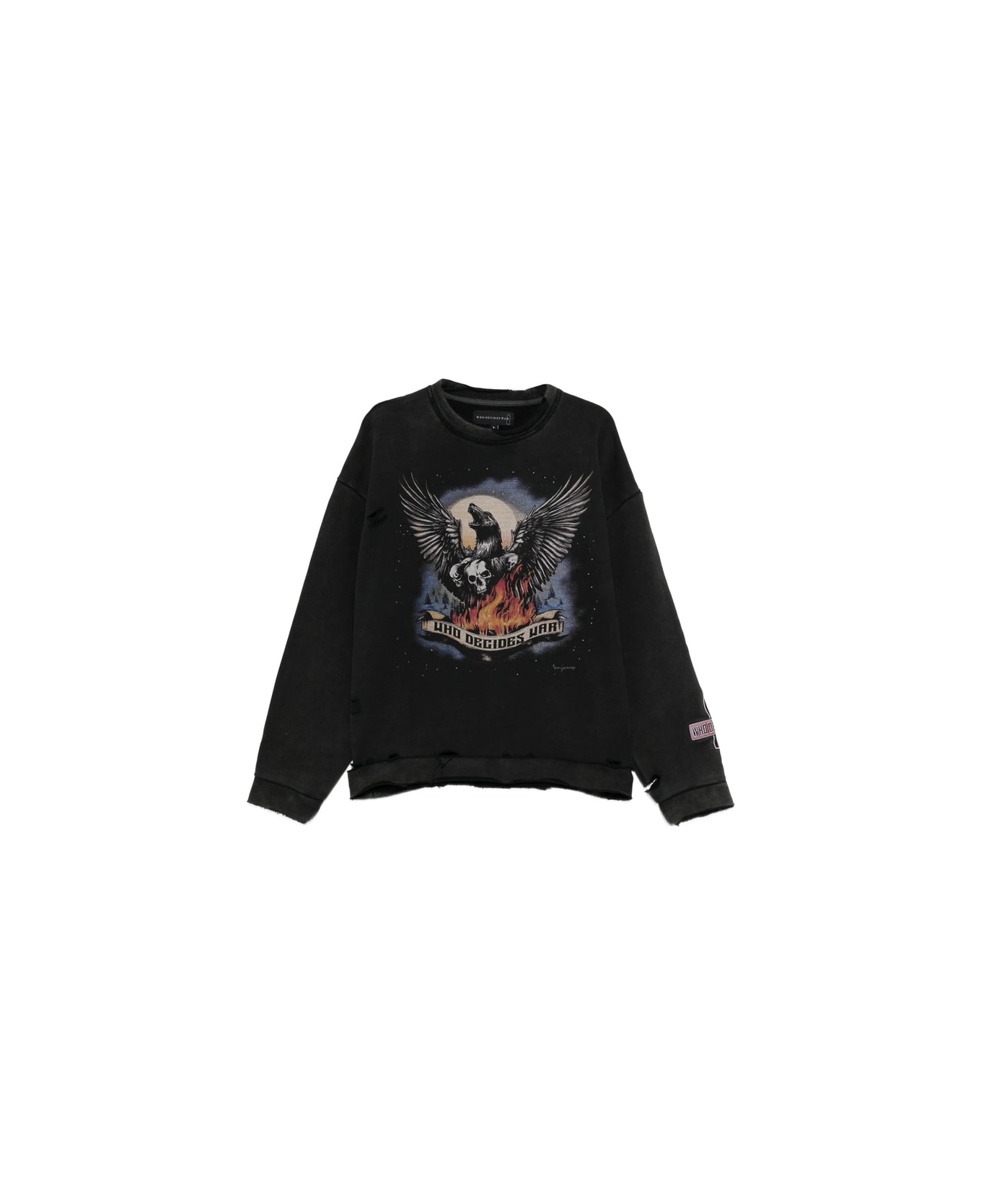 coal grey graphic print distressed detailing ribbed trims crew neck long sleeves