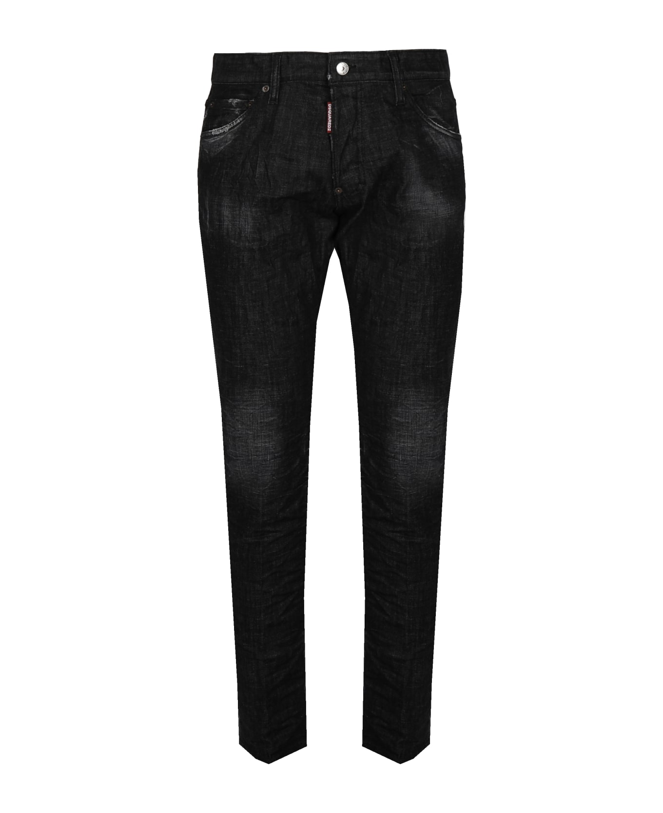 Black Black Jeans With Back Logo from Dsquared2 -Denim with faded effect -Application on the back with logo -Slim cut -Button and concealed zip fastening -Five pockets and belt loops -Made in Italy -Colour: Black -98% Cotton, 2% Elastane