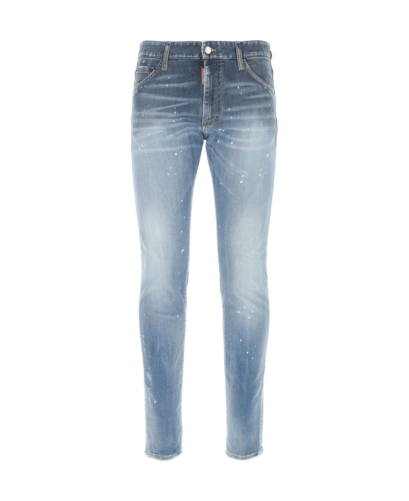 Jeans skinny realized in distressed and stone-washed stretch cotton denim characterized by contrasting printed logo at the back.