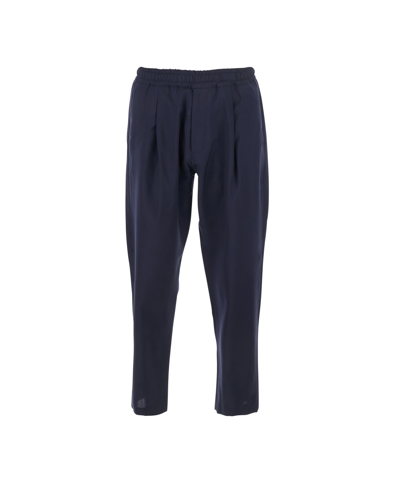 Blue Pants With Elastic Waist And Patch Pockets On The Back In Wool Man